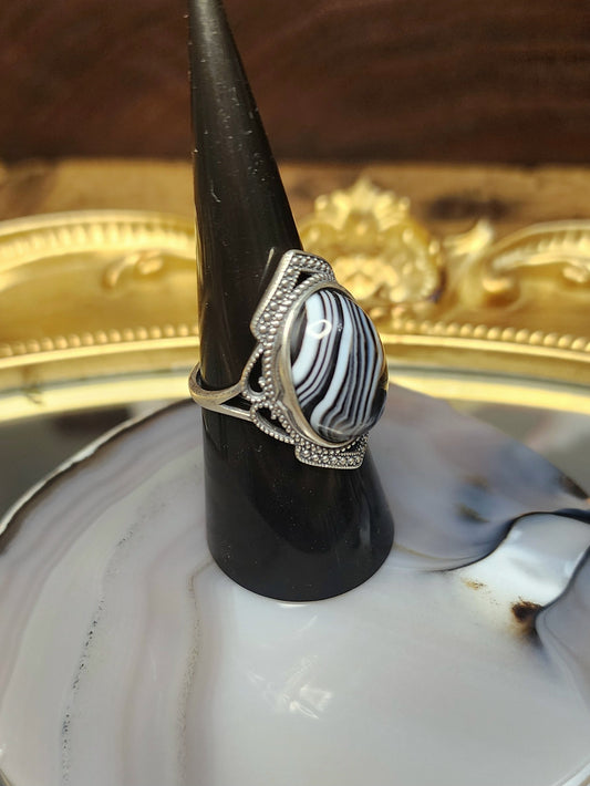Black and White Agate Ring A