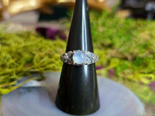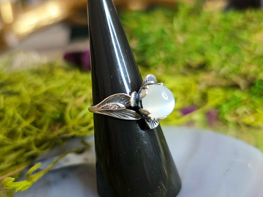 White Moonstone Flower Ring