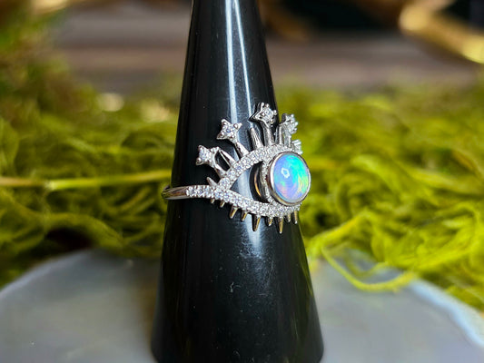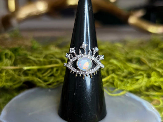 White Opal Evil Eye Ring B
