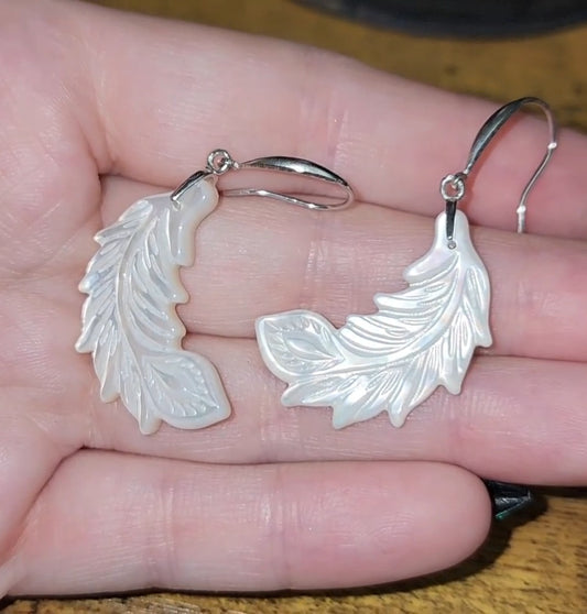 White Feather Shell Earrings