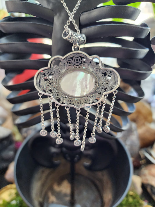 White Shell and Sterling Silver "Family Lock" Pendant Necklace
