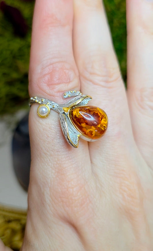 Amber is a fossilized tree resin that's used to make jewelry and other decorative items. It's an organic substance that's sometimes called "gold of the North"