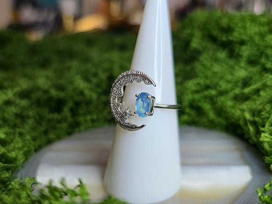 Aquamarine Crescent Moon Ring