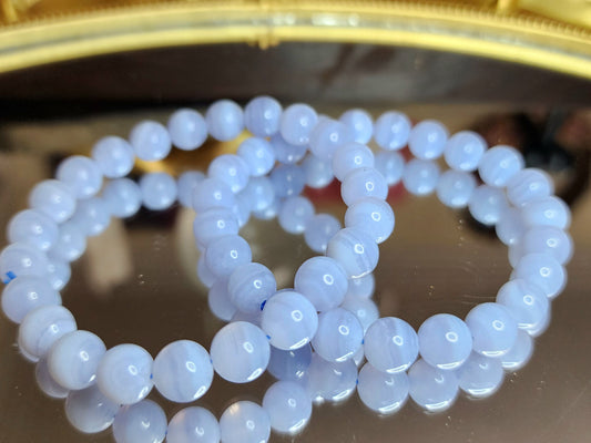 Blue lace agate is a type of chalcedony which blue and white colorings that pattern to look like lace. Blue lace agate was discovered in Namibia, but it has also been found in South America, Asia, and Parts of North America.