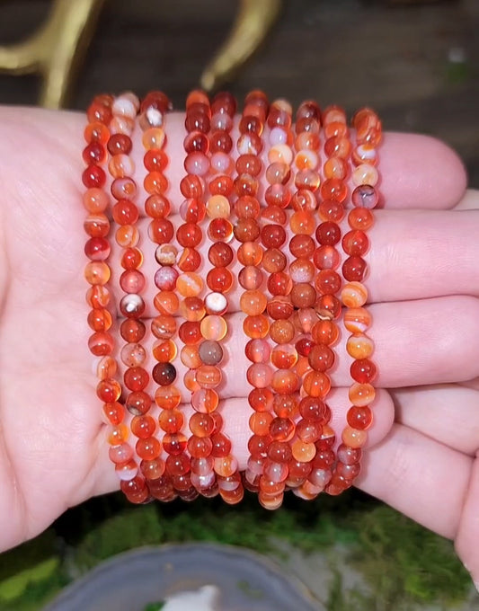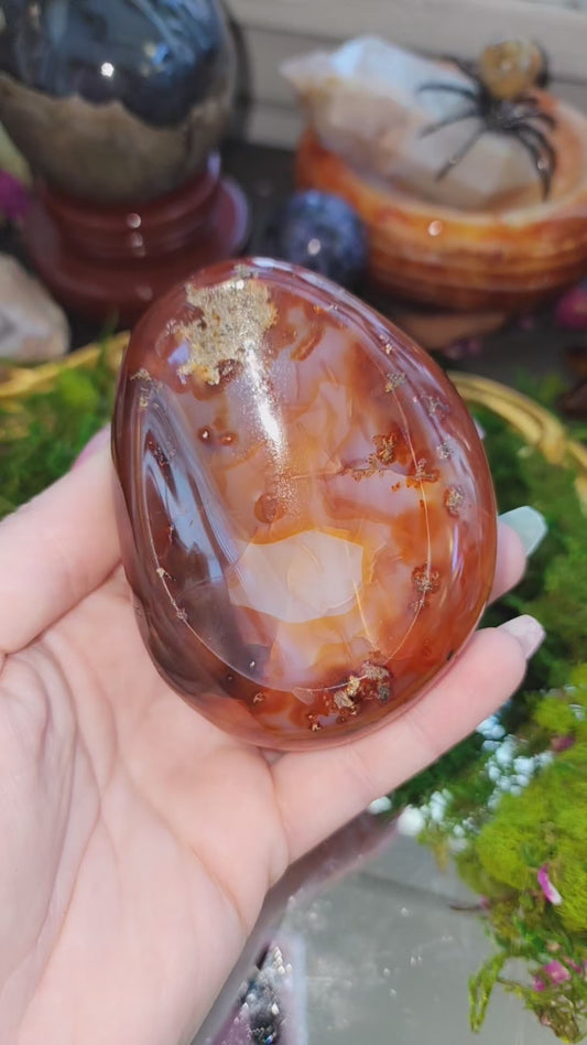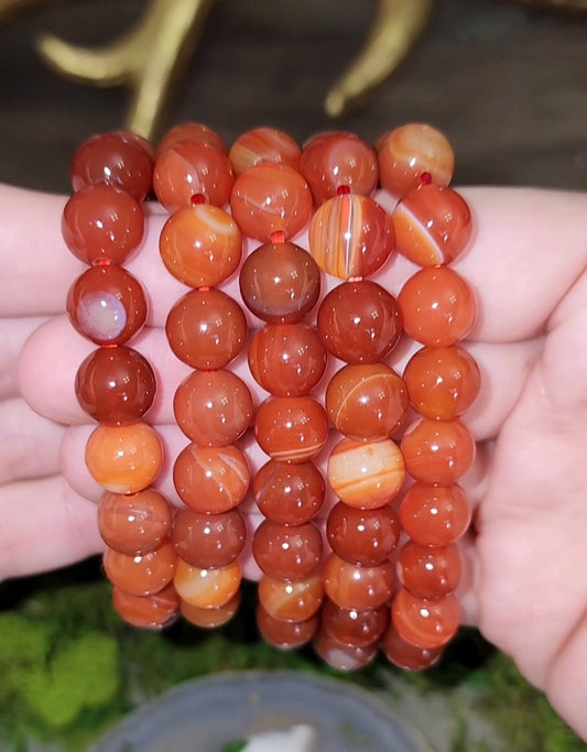 Carnelian is a semi-precious stone and a variety of chalcedony quartz. It's known for its vibrant colors, which range from yellow to orange to red and reddish-brown, and its smooth, waxy texture. Carnelian's color comes from iron oxide, and stones can be heated to increase the saturation of their color.