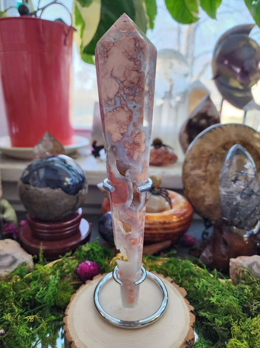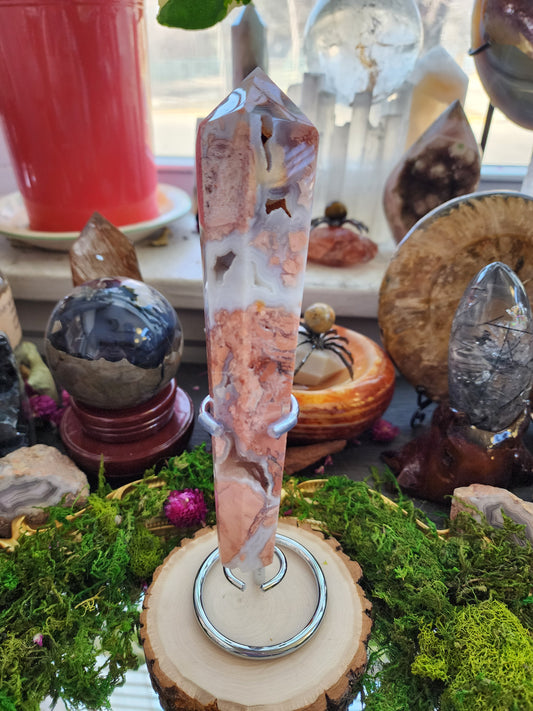 Cotton Candy agate is a recently discovered material collected from Mexico. It is named for its confectionary appearance, with multiple shades of pink brecciated jasper surrounded by fluffy bands of whitish agate and druzy quartz.