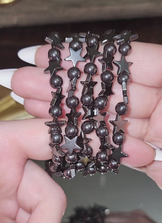 Hematite Stars Stretch Bracelet