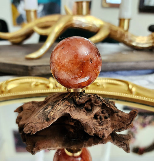 Fire Quartz Sphere on driftwood stand D