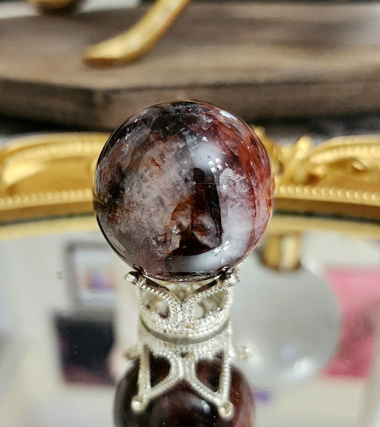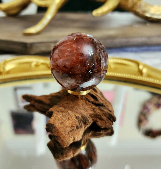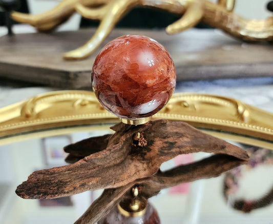 Fire Quartz Sphere on driftwood stand A