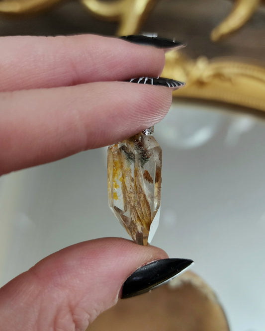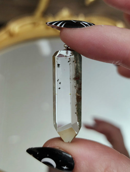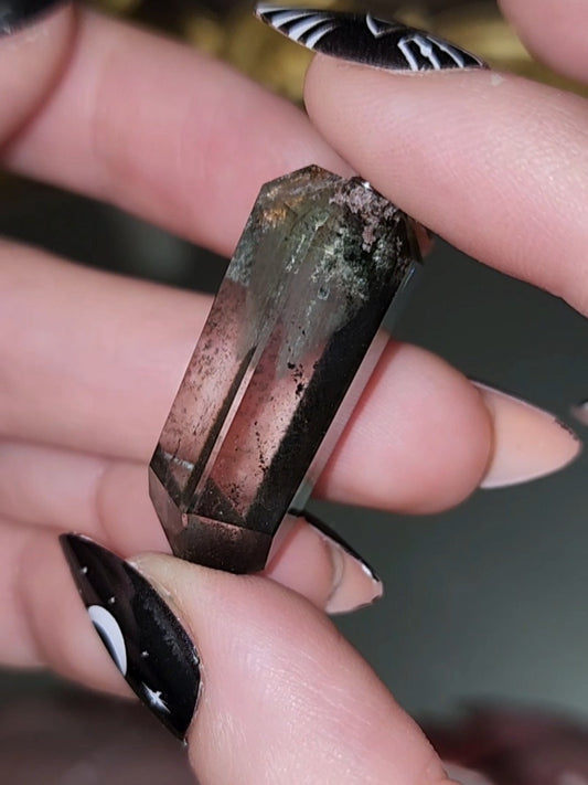 Garden quartz, also known as Lodalite, is clear quartz with various inclusions of chloride, iron, and other minerals that give the illusion of a suspended garden.