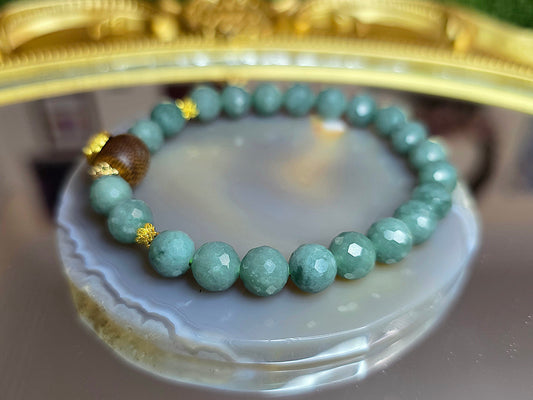 Jadeite and Wood Stretch Taotie Mask Bracelet