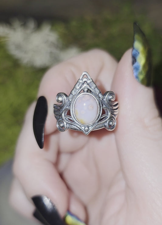 Orbicular Sea Jasper Moon Ring D
