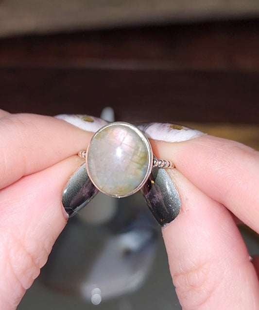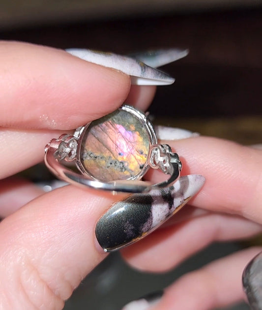 "Lab" is a fan favorite for good reasons. This beautiful stone can be a secret stunner, unassuming until it hits the right light then boom! You get greeted with with bright flashes that range from blue, to yellow, to green, to orange, and even pink and purple!