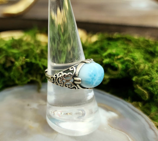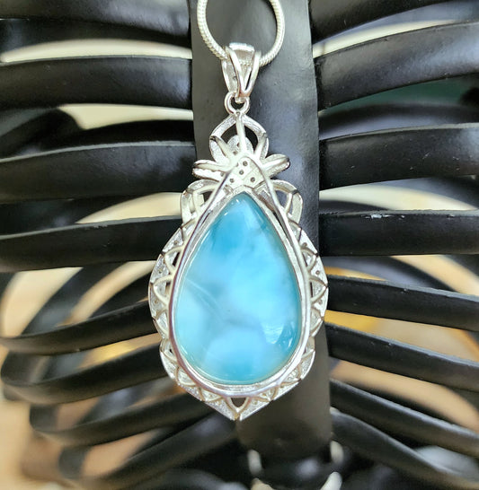 Larimar is the tradename for a rare blue variety of pectolite found only in the Dominican Republic. Its coloration varies from bluish white, light-blue, light-green, green-blue, turquoise blue, turquoise green, turquoise blue-green, deep green, dark green, to deep blue, dark blue and purple, violet and indigo and the larimar can come in many varieties and color mixes.