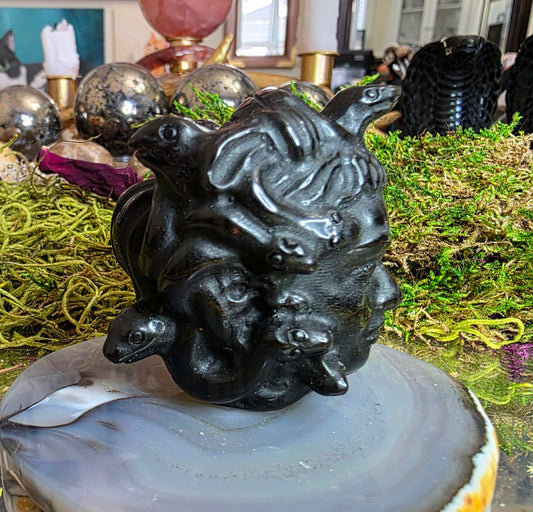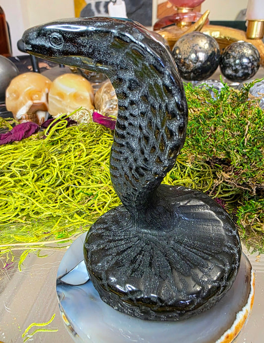 8mm Faceted Snowflake Obsidian Stretch Bracelet