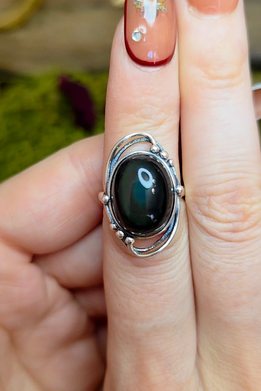 8mm Rainbow Obsidian with White Shell Moon Stretch Bracelet
