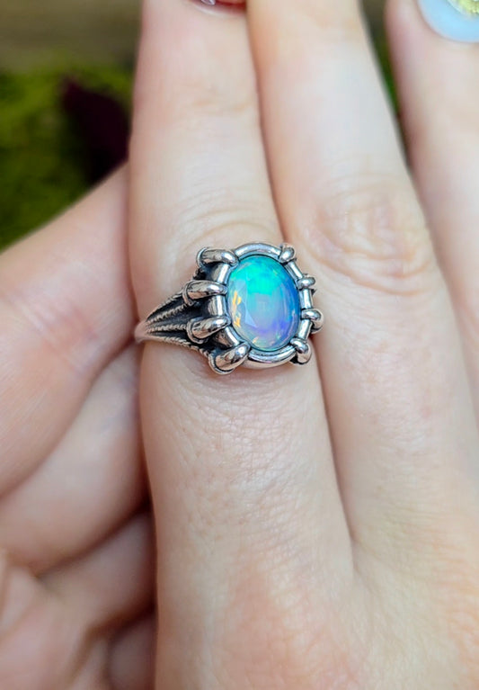 Opal is a hydrated amorphous form of silica; its water content may range from 3 to 21% by weight, but is usually between 6 and 10%. Due to its amorphous property, it is classified as a mineraloid, unlike crystalline forms of silica, which are considered minerals.