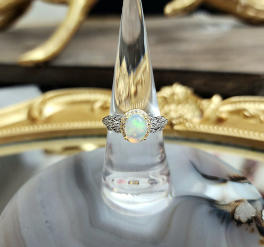 Opal and Moissanite Ring B