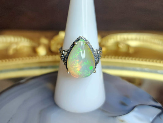 Large Opal Teardrop Ring
