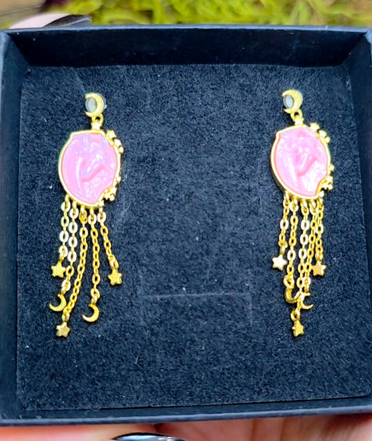 Pink Shell Unicorn Earrings