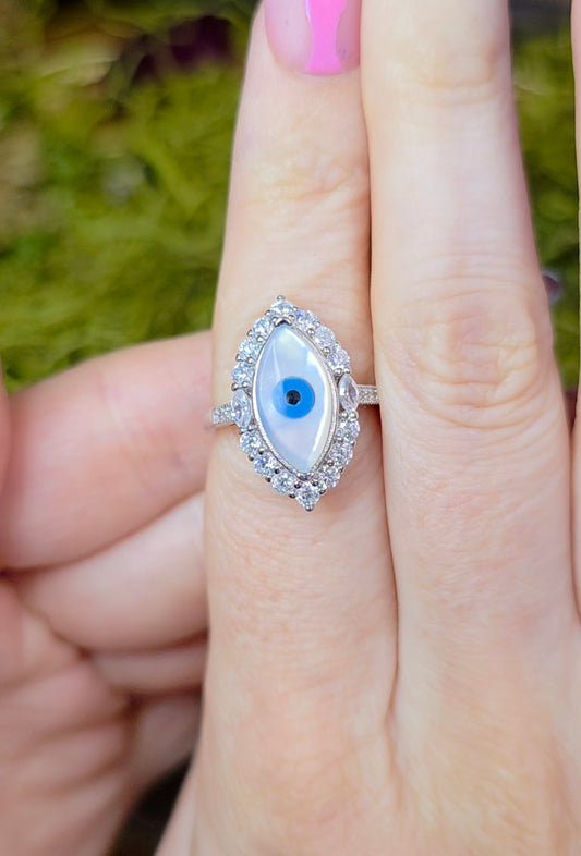 White Shell Evil Eye Ring