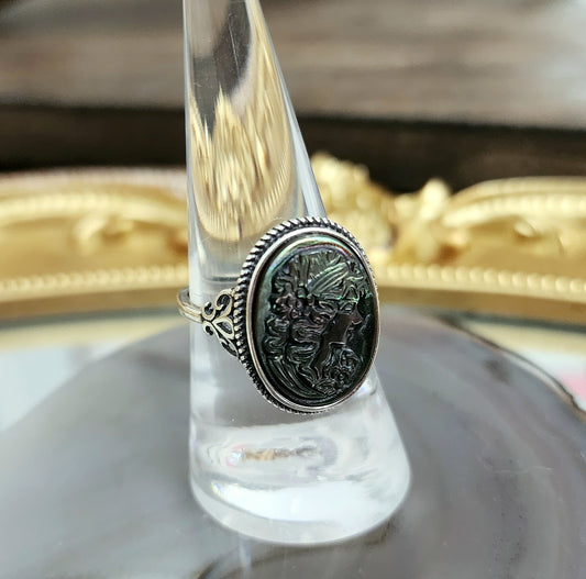 Black Shell Cameo Ring A