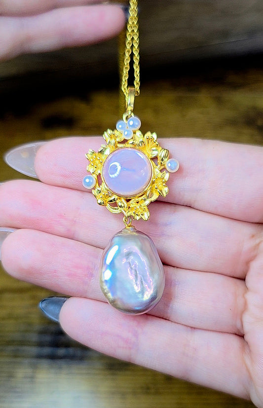 Sold outDruzy Pink Agate Teardrop Pendant F