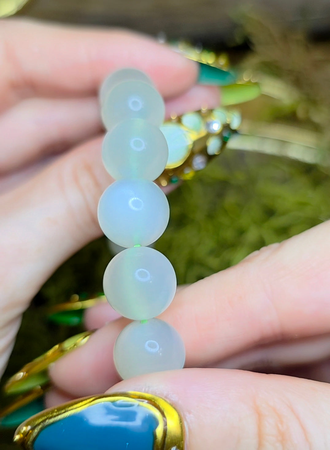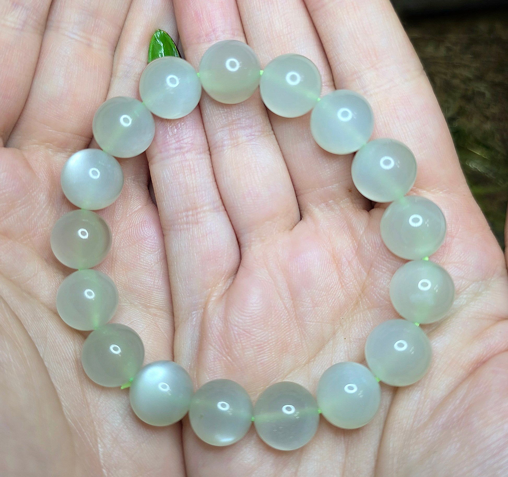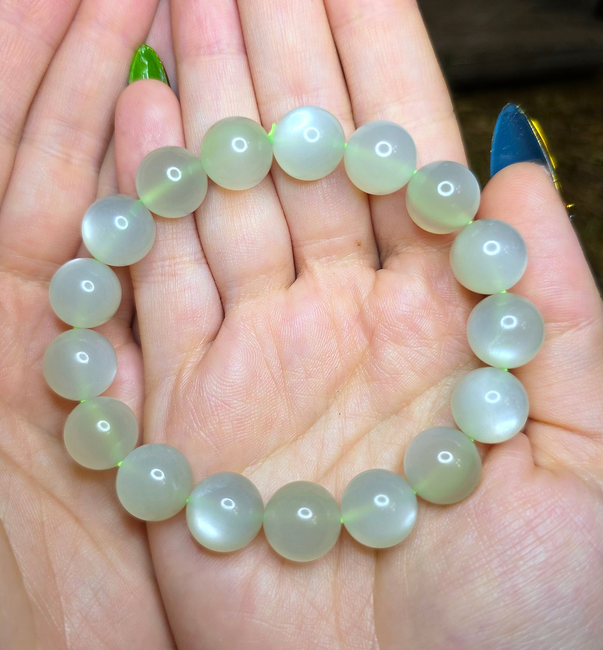 12mm High Quality Green Moonstone Stretch Bracelet