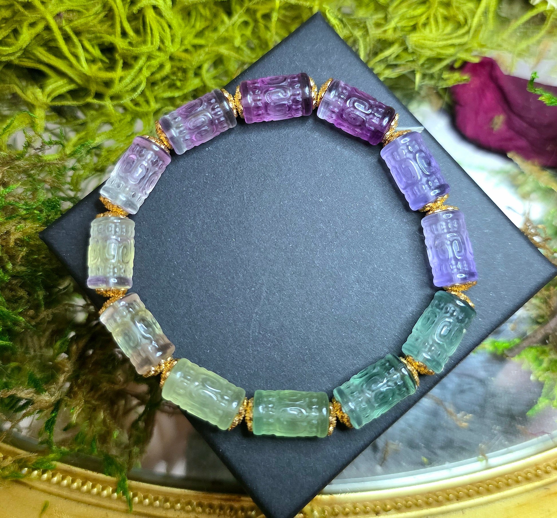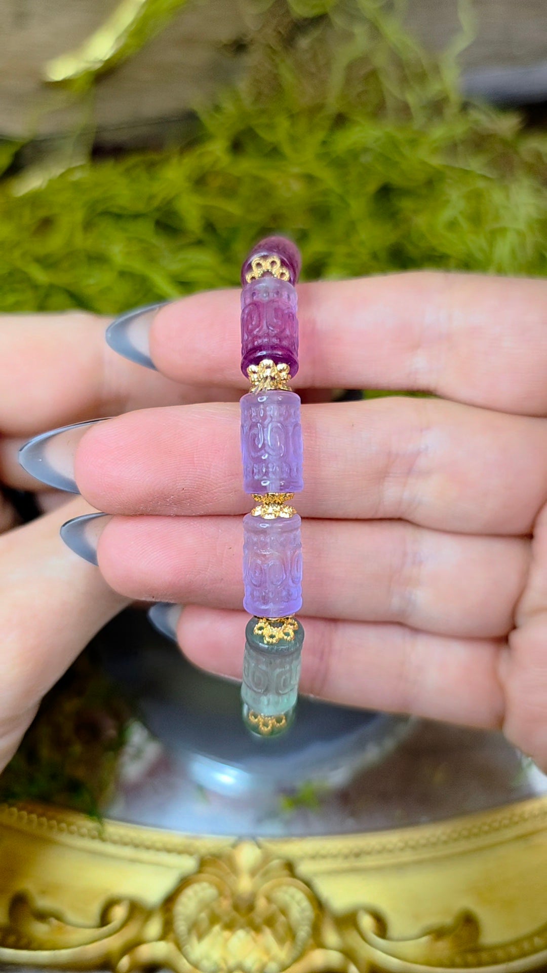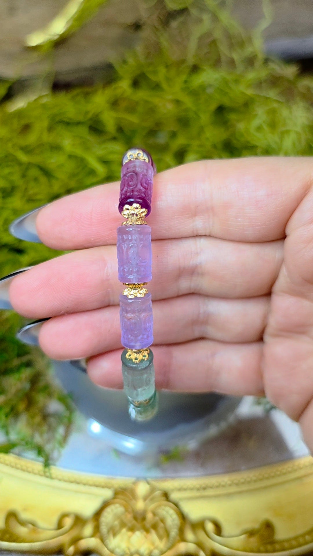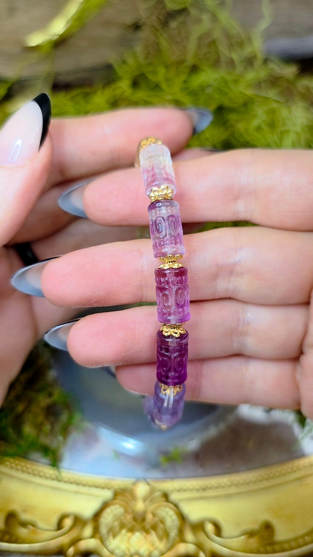 Each stone is approximately 13x7mm, carved, and is strung on an elastic cord, making it suitable for wrists of all sizes. This bracelet also features gold plated alloy spacers.