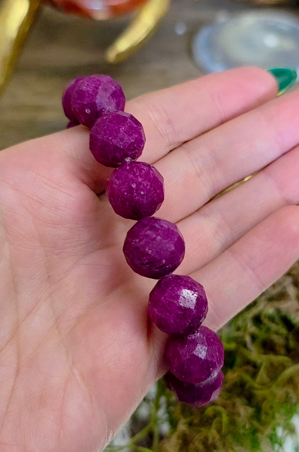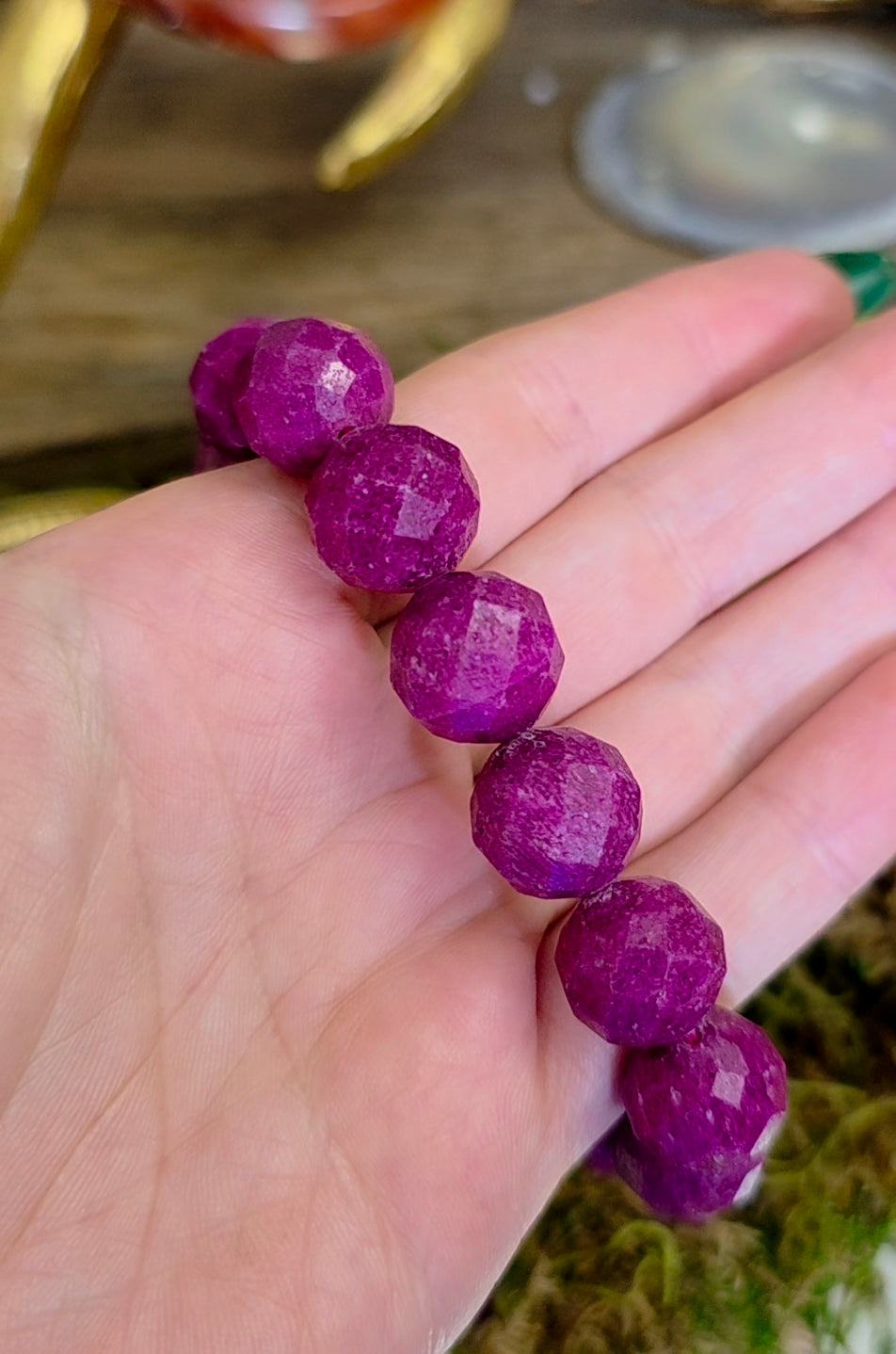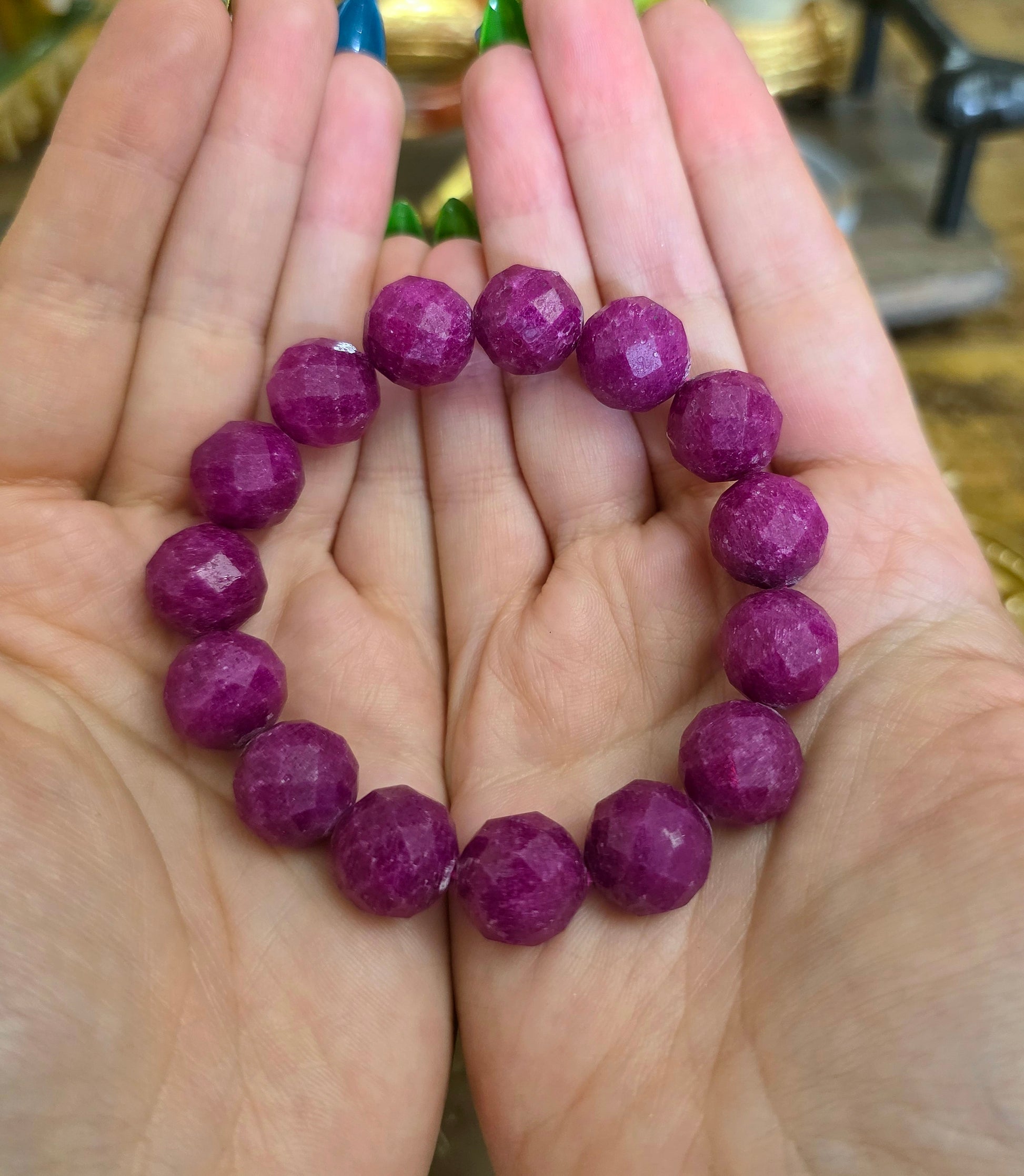 Each stone has been faceted, is approximately 14mm and is strung on an elastic cord, making it suitable for wrists of many sizes.