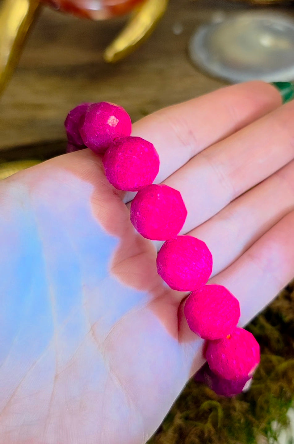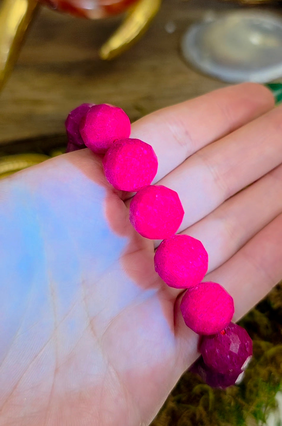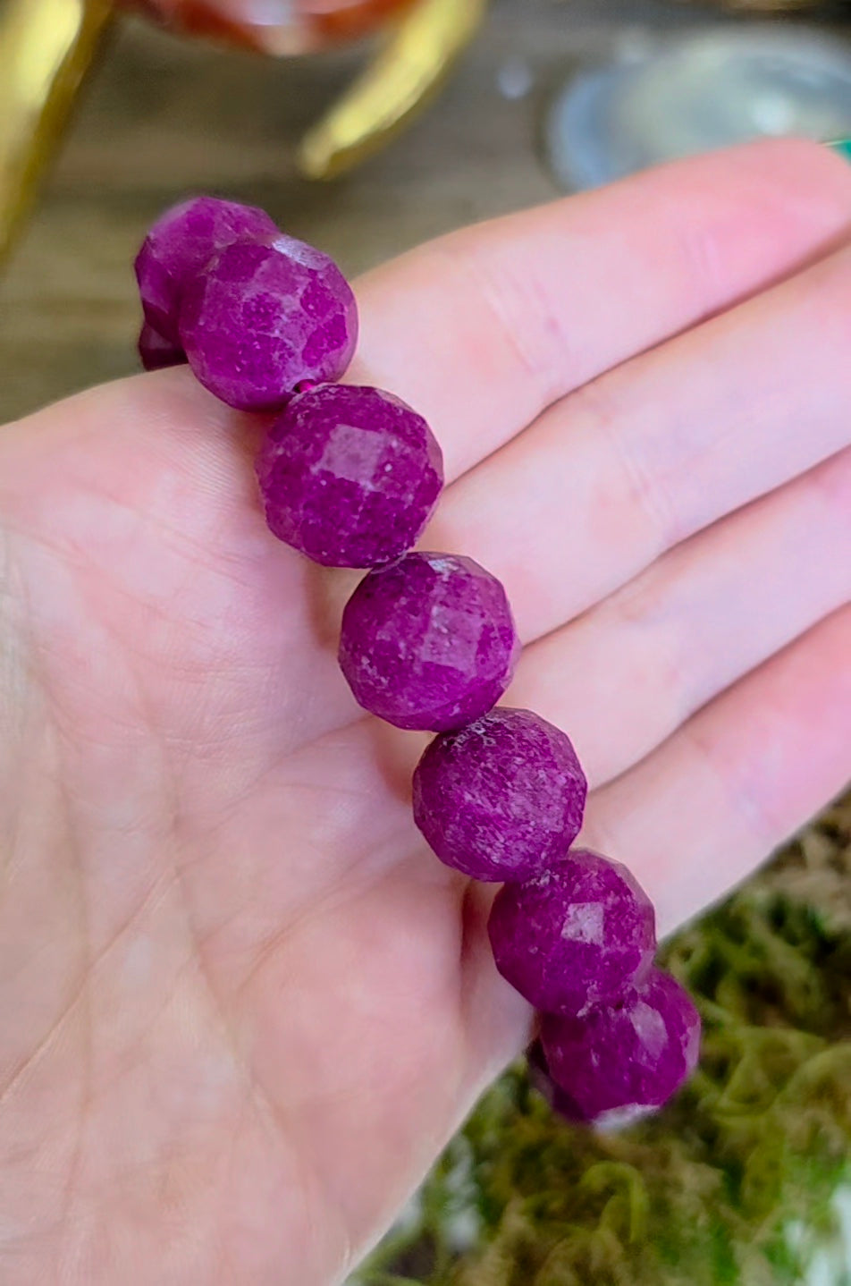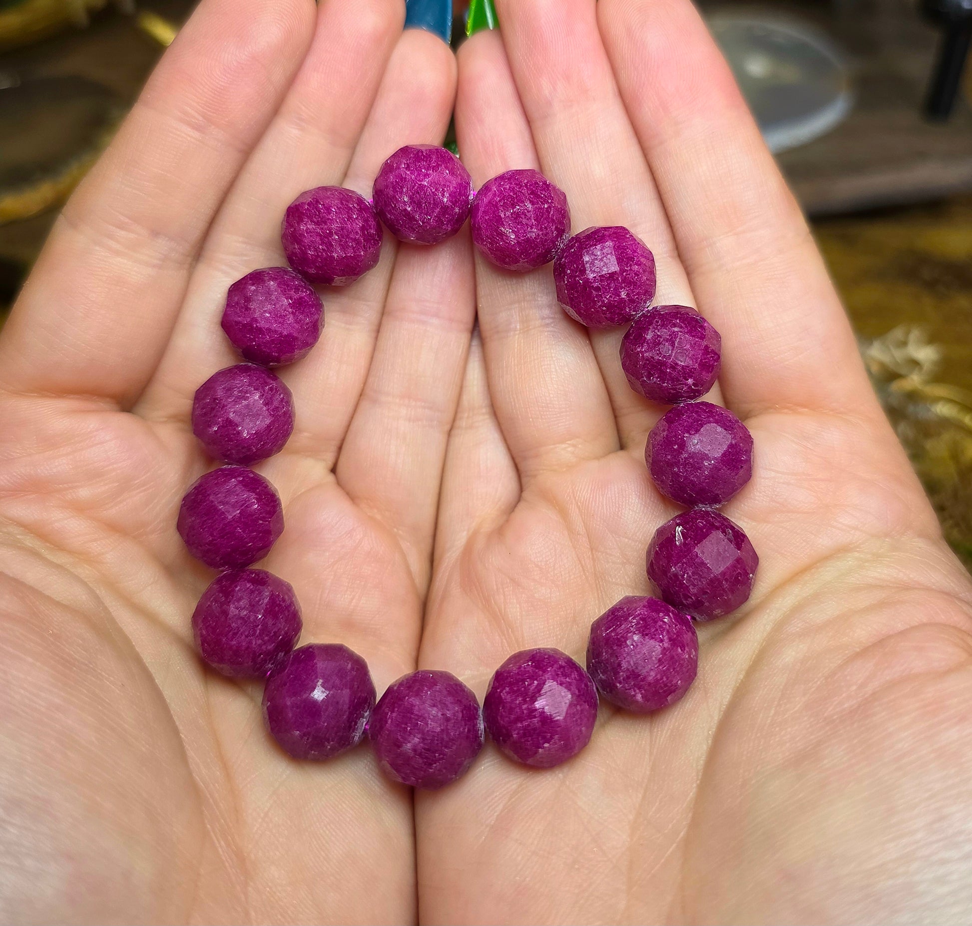 Each stone has been faceted, is approximately 14mm and is strung on an elastic cord, making it suitable for wrists of many sizes.