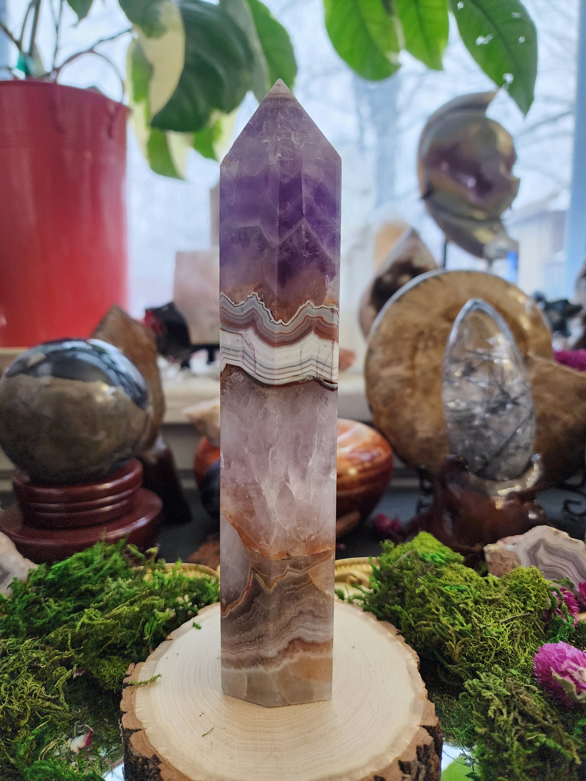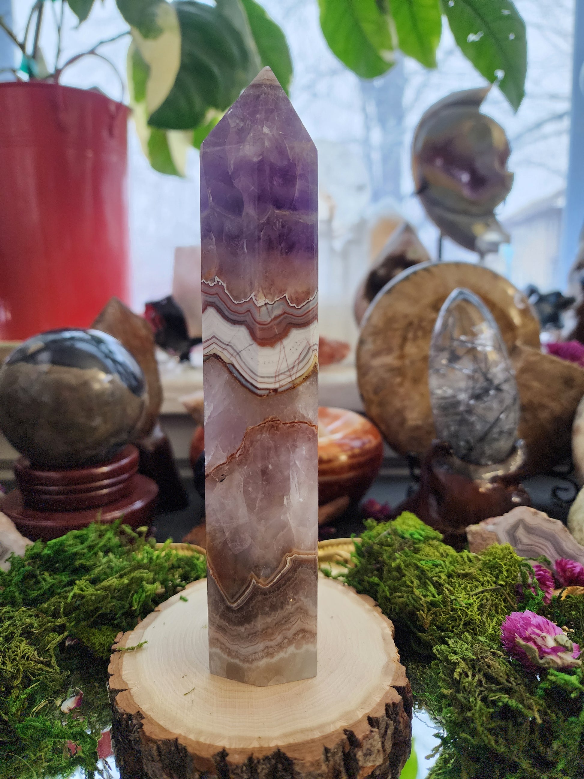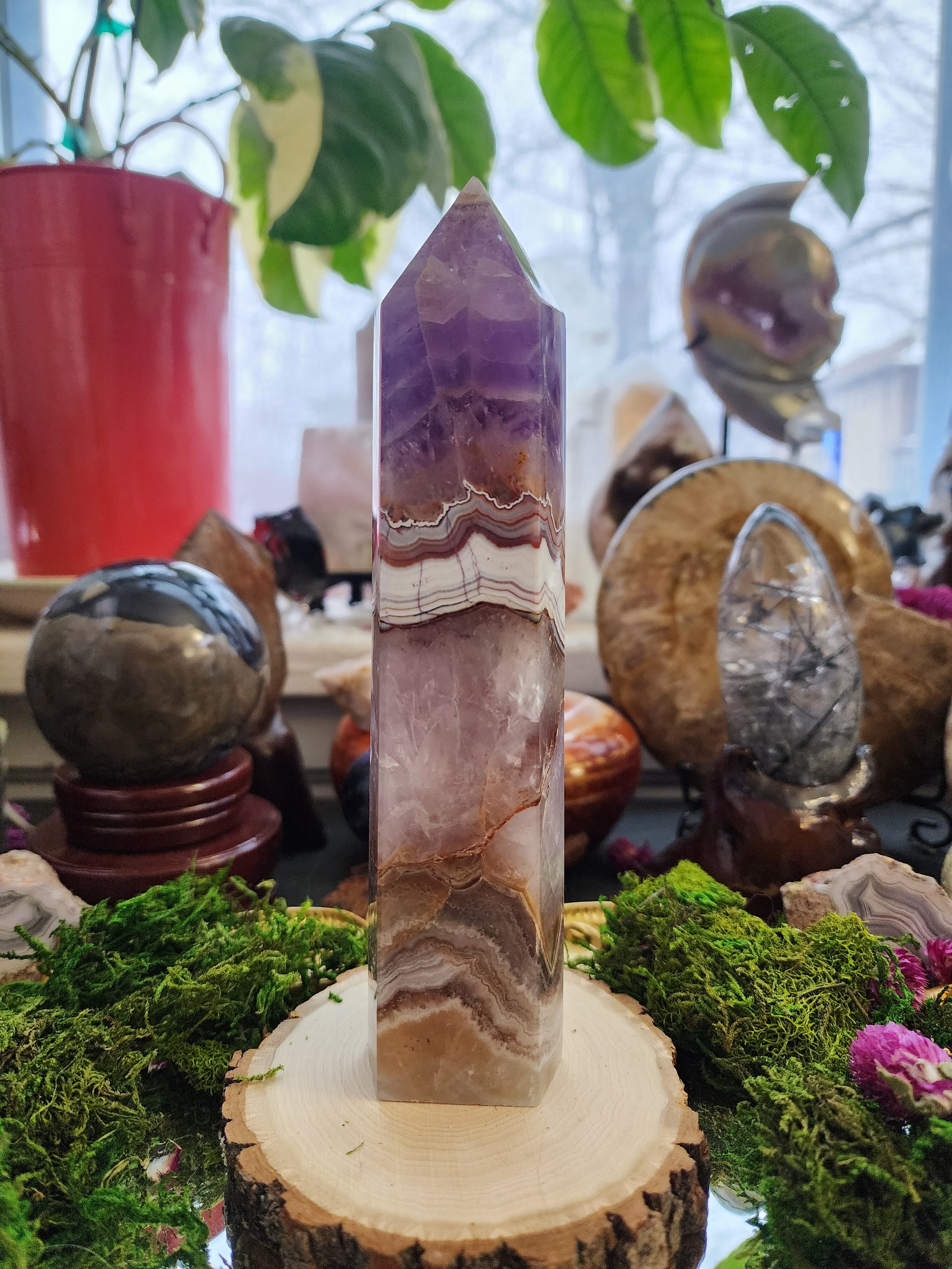 Amethyst and Crazy Lace Agate Tower