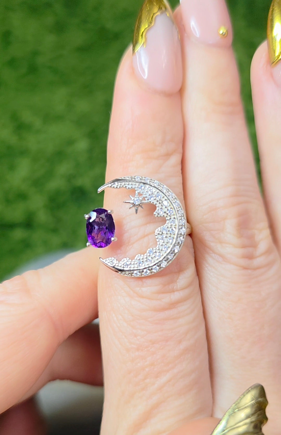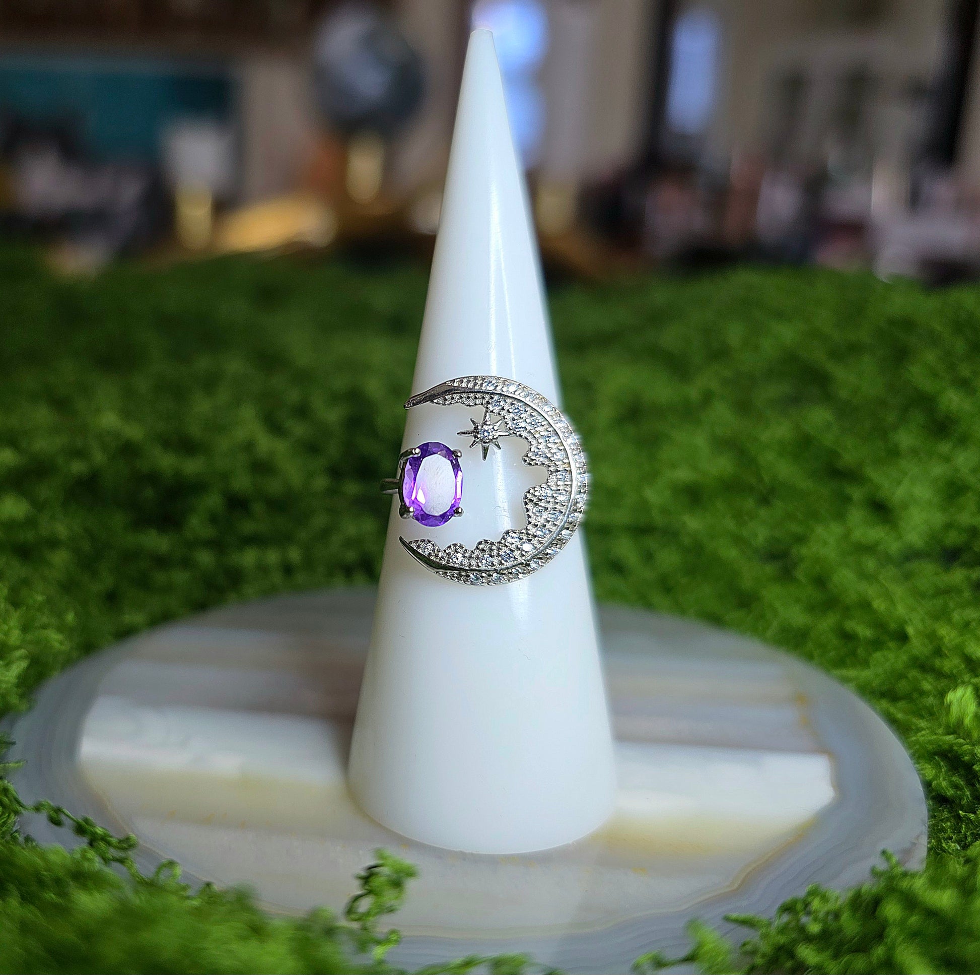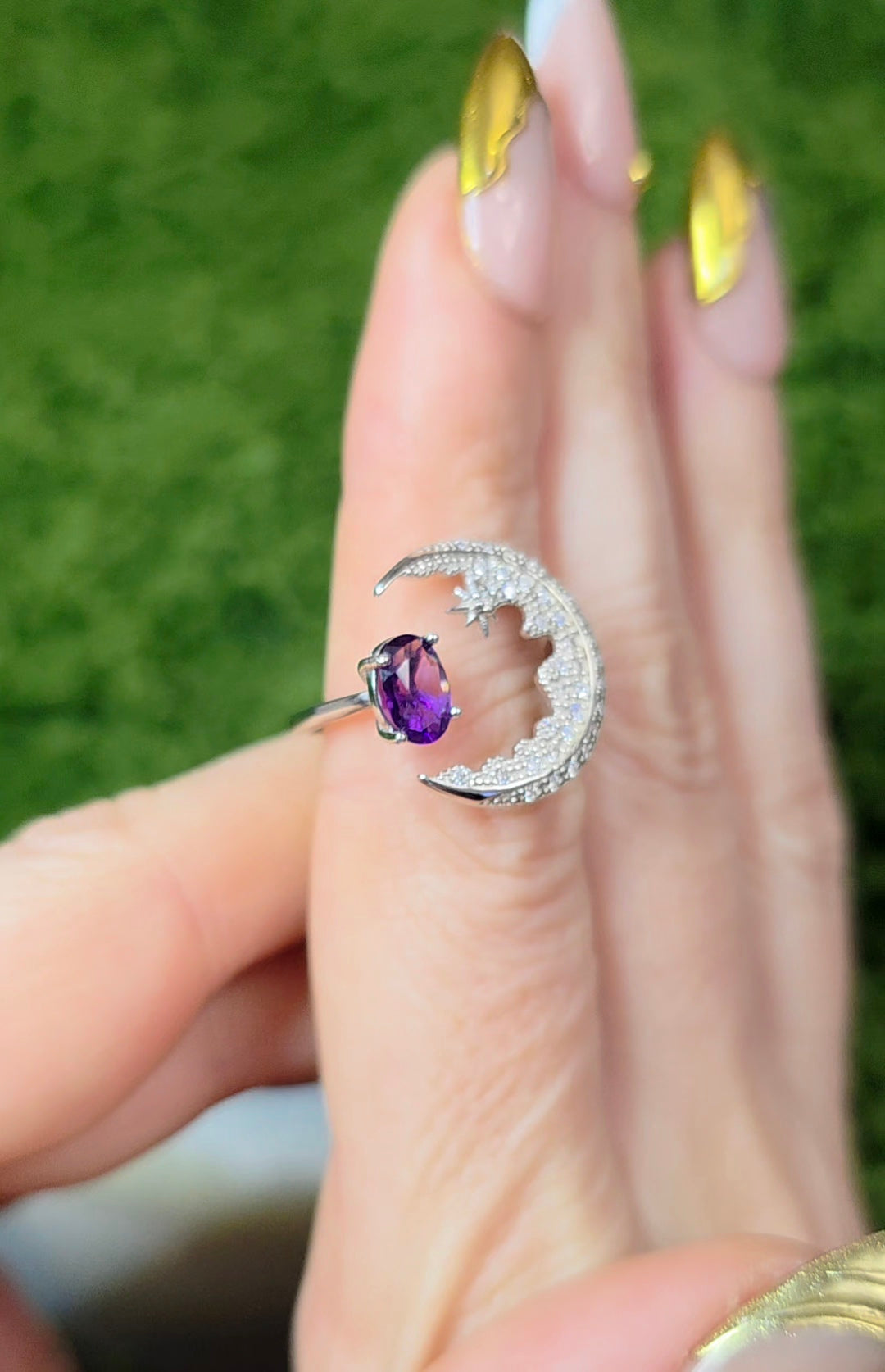 Amethyst Crescent Moon Ring