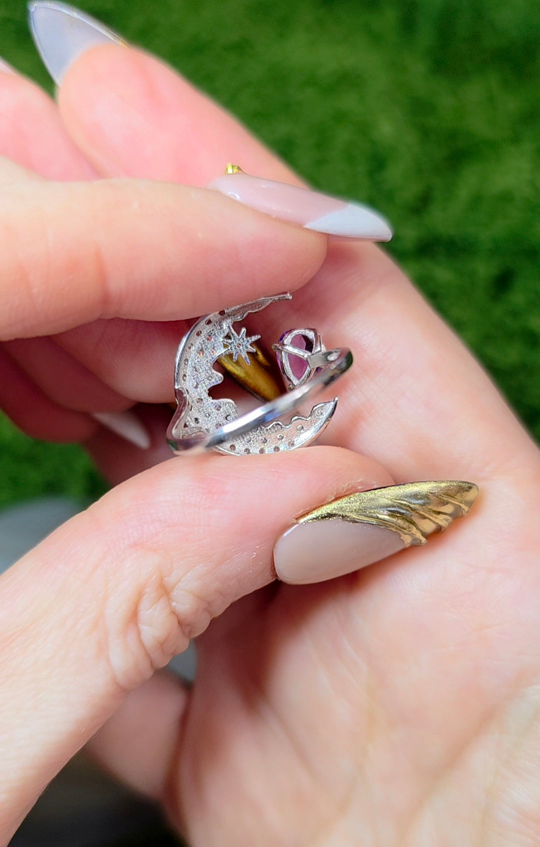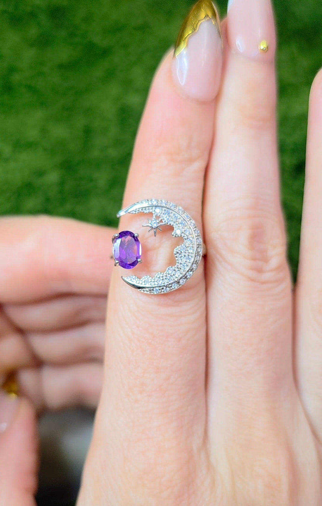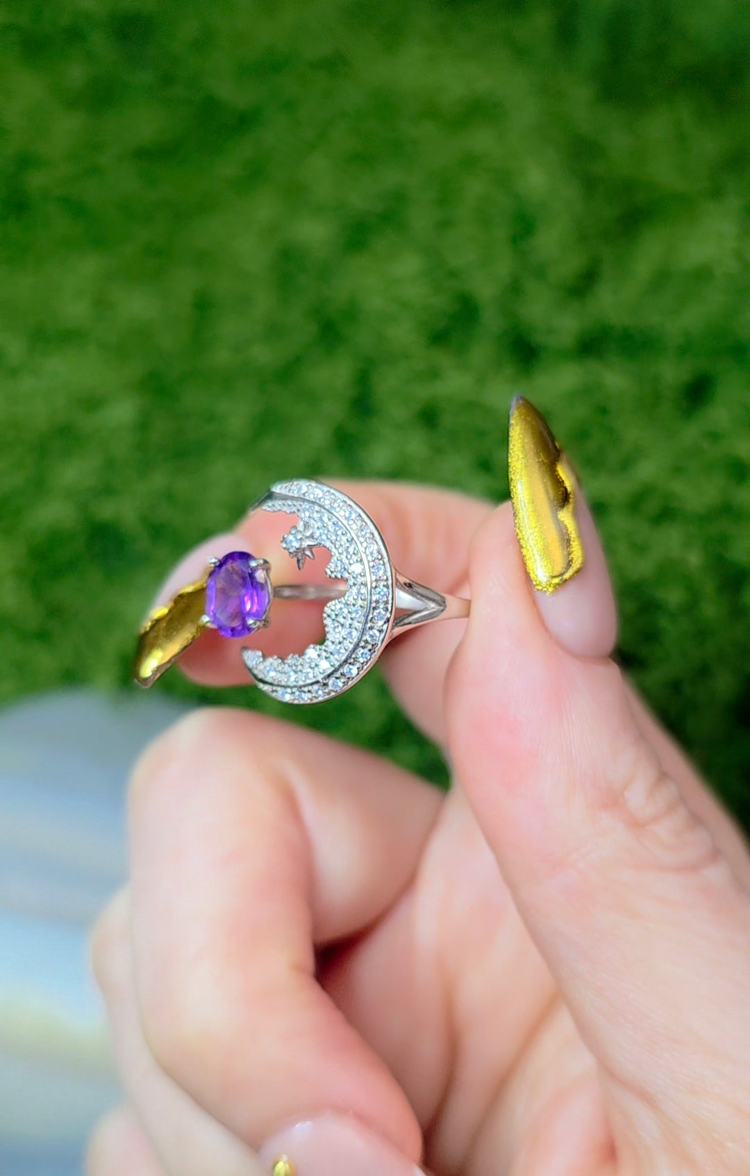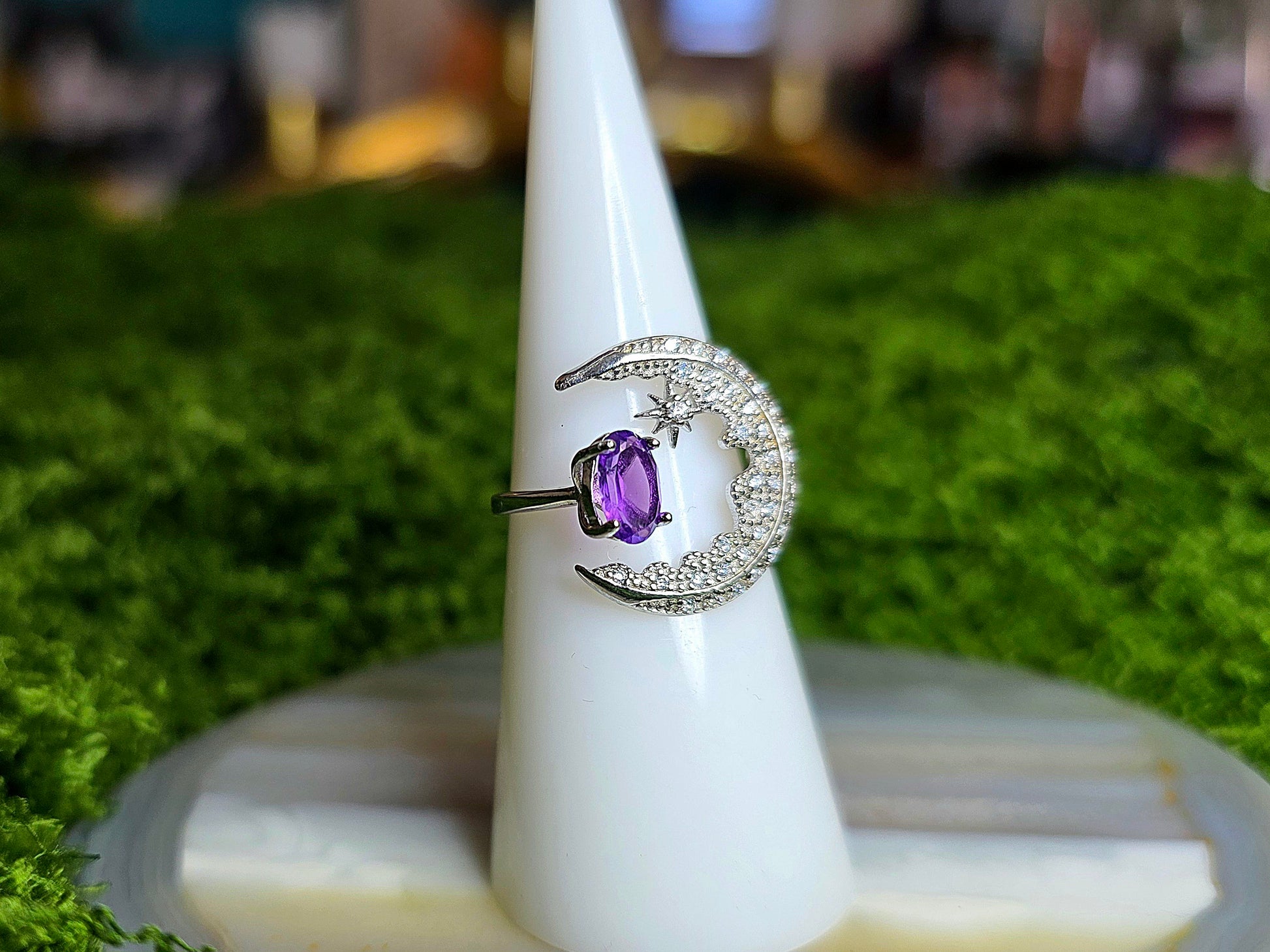 Amethyst Crescent Moon Ring