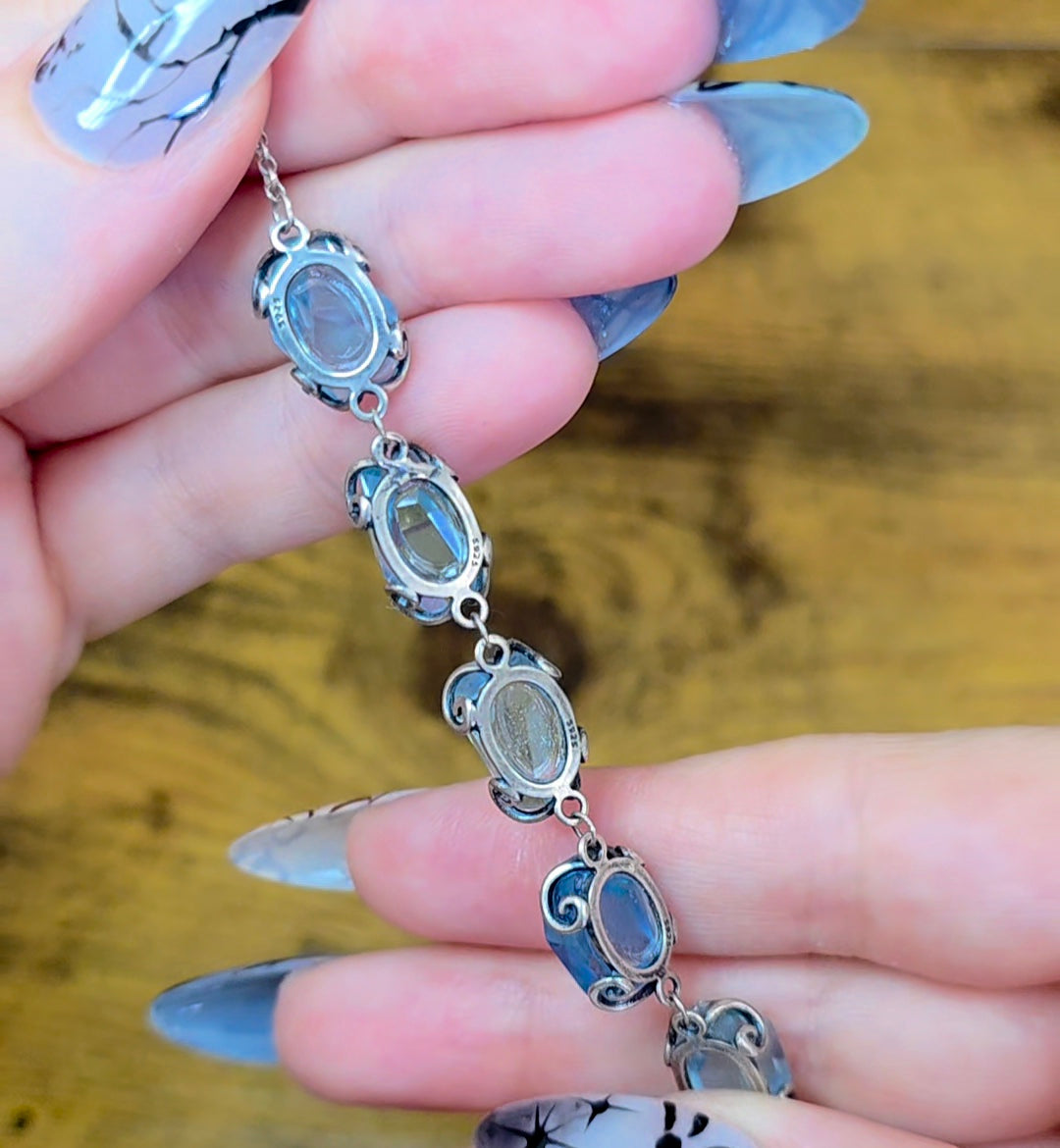 Aquamarine Freeform Sterling Silver Bracelet