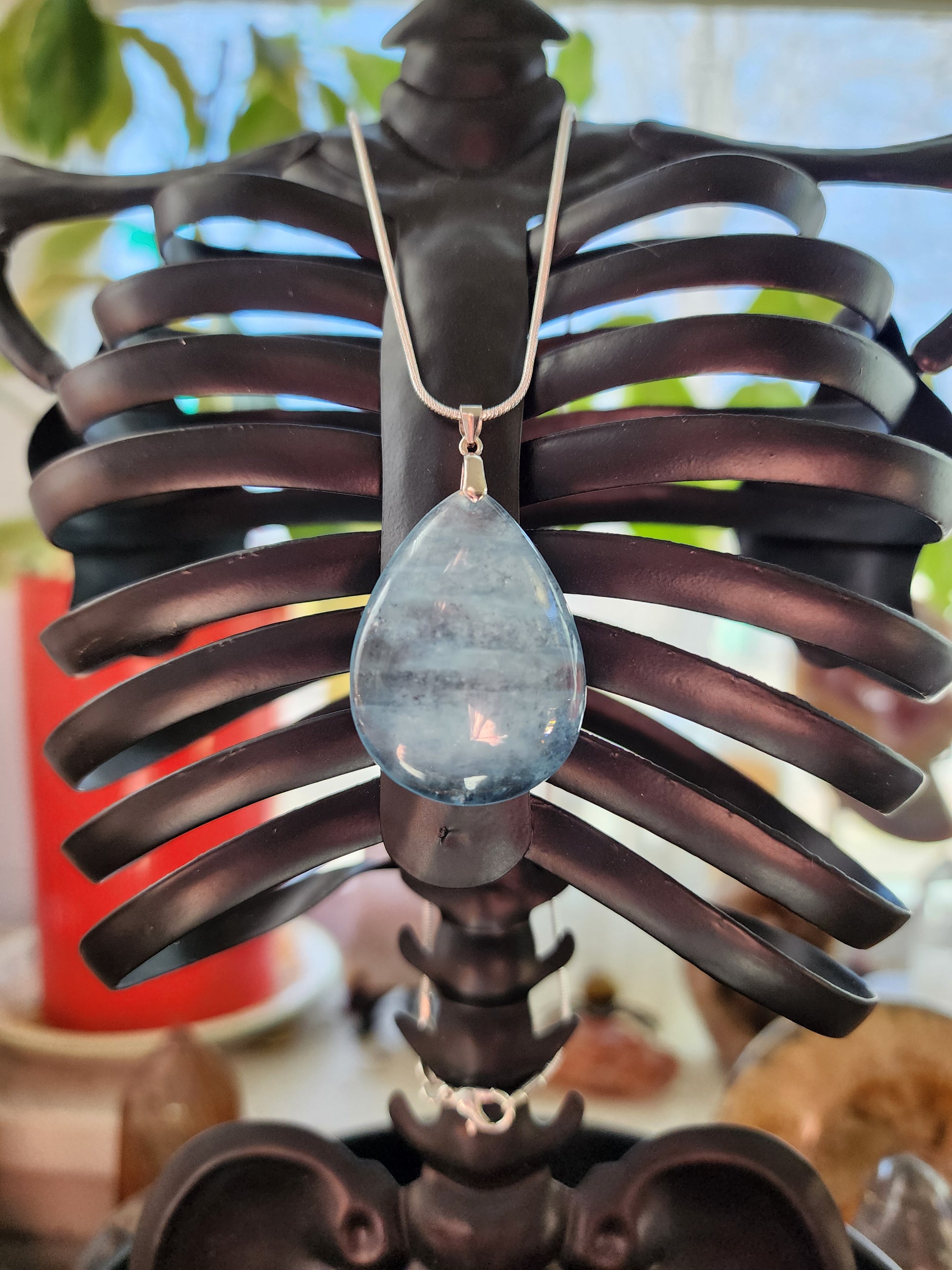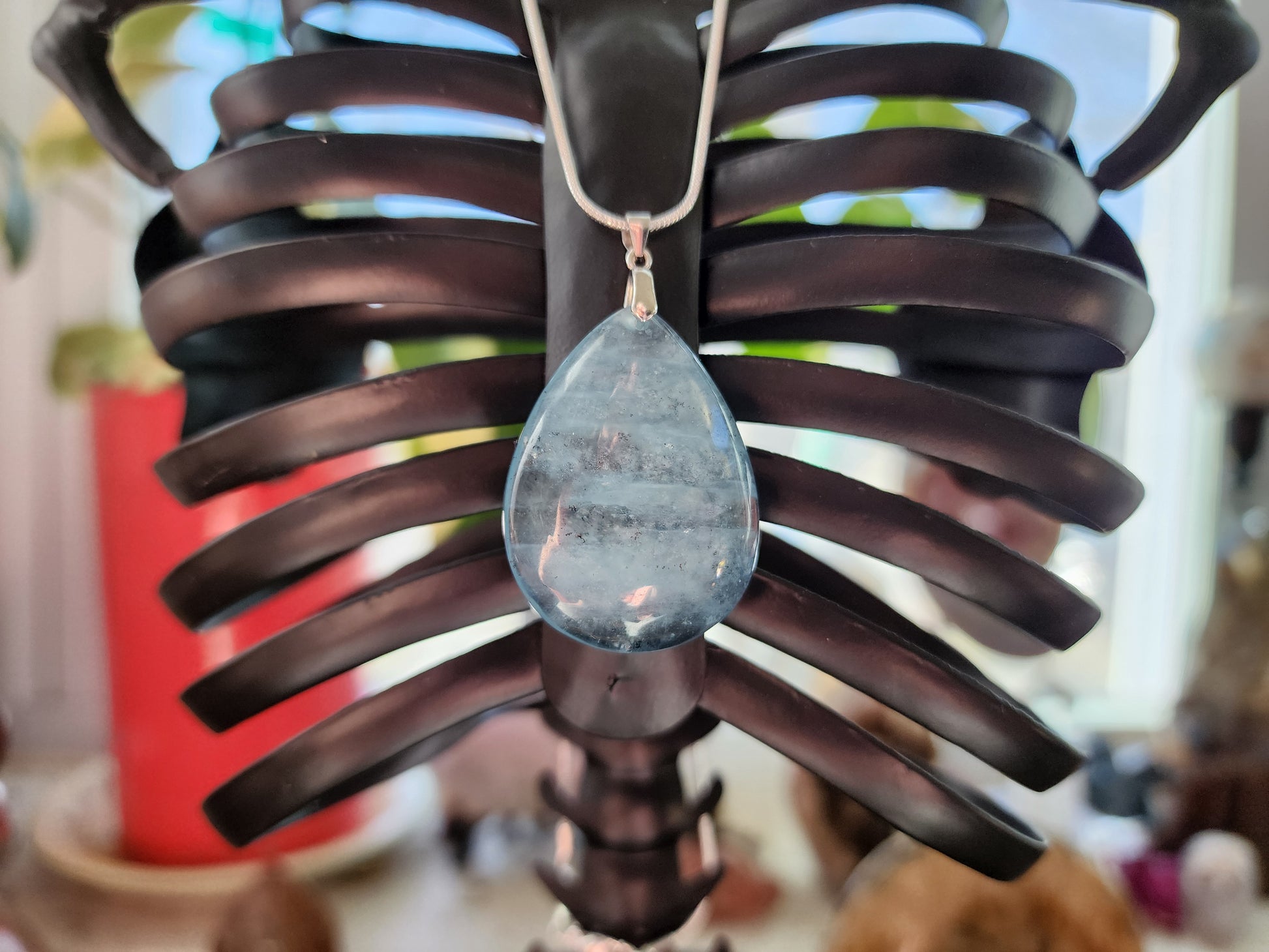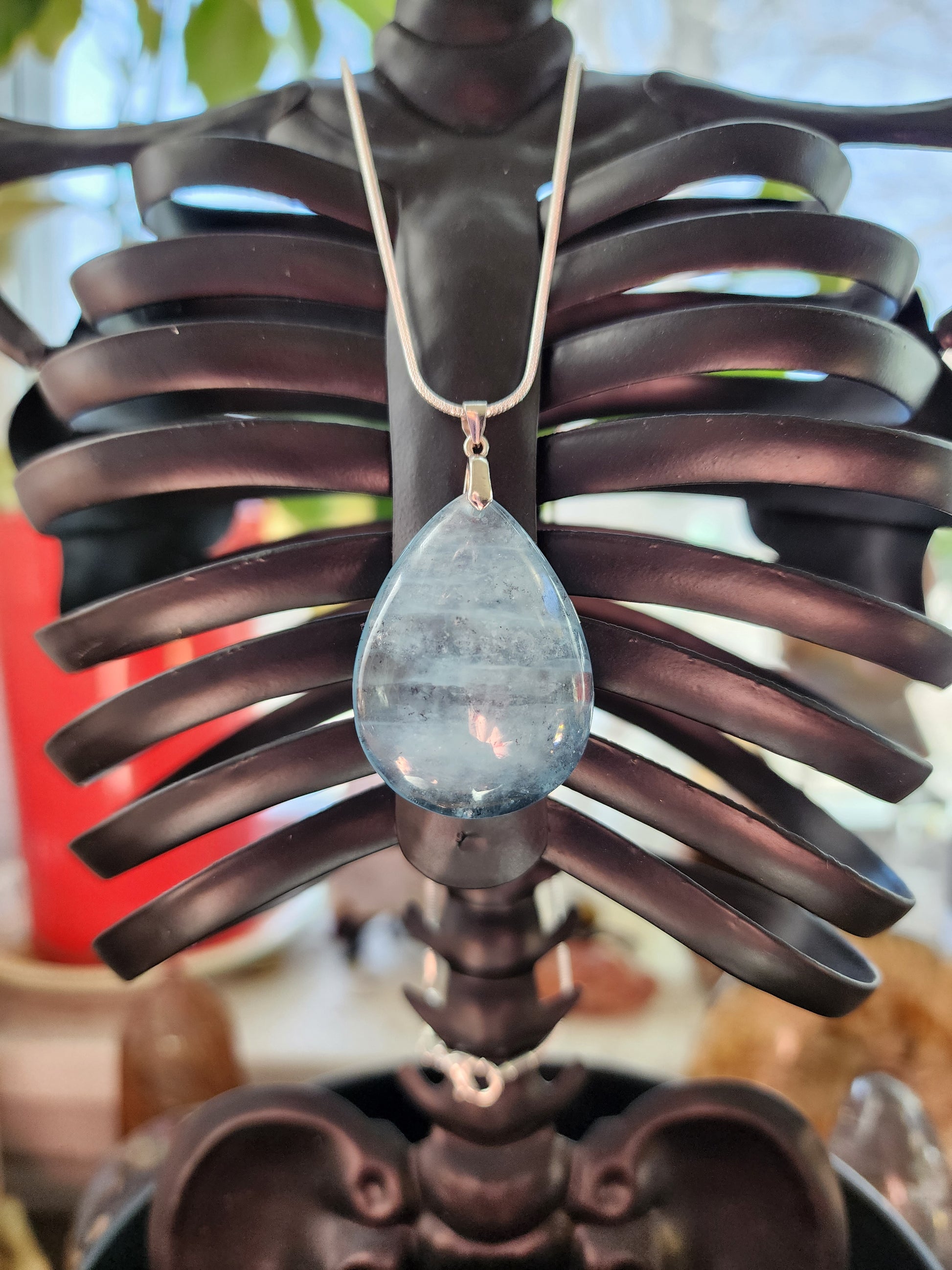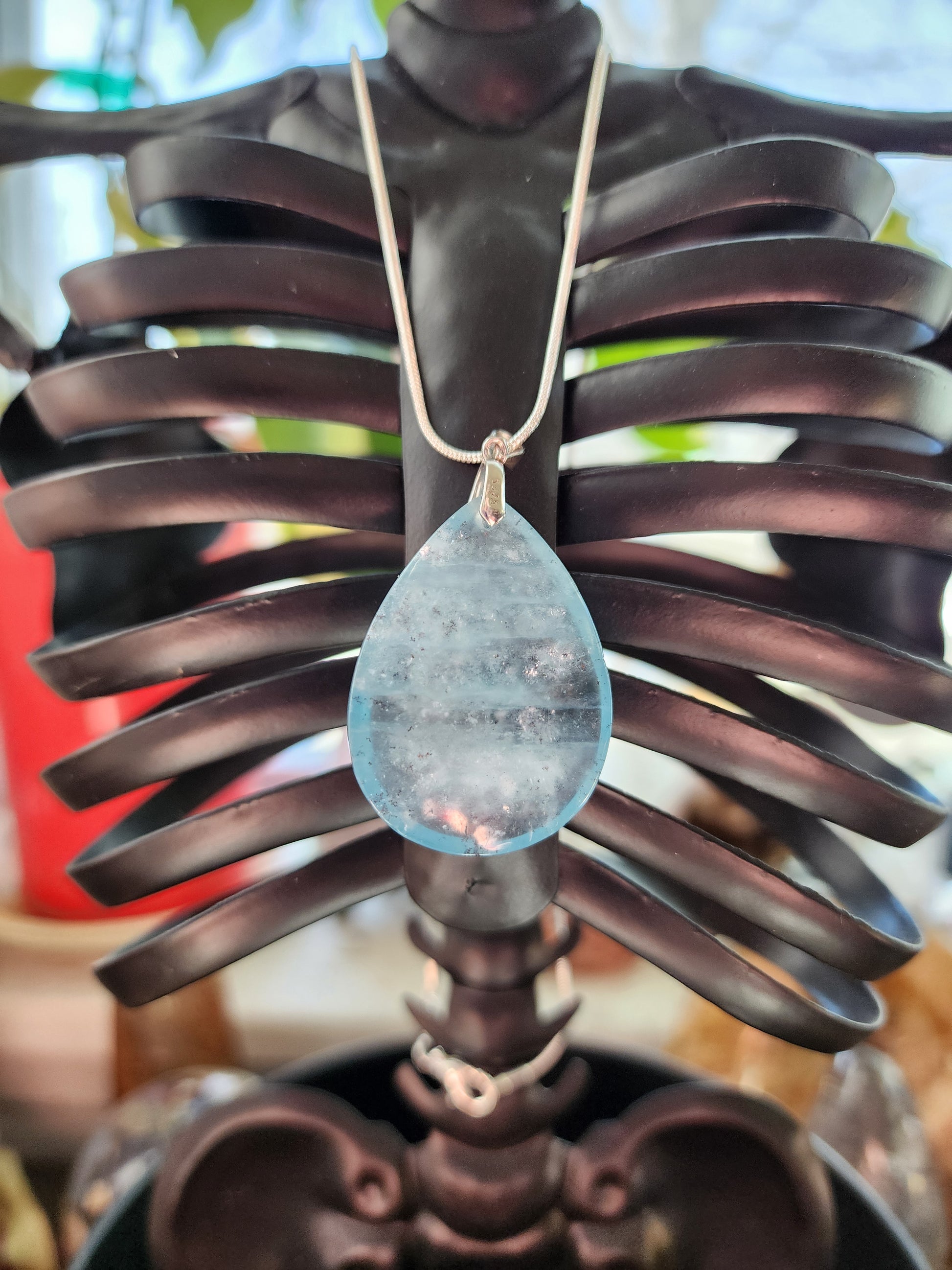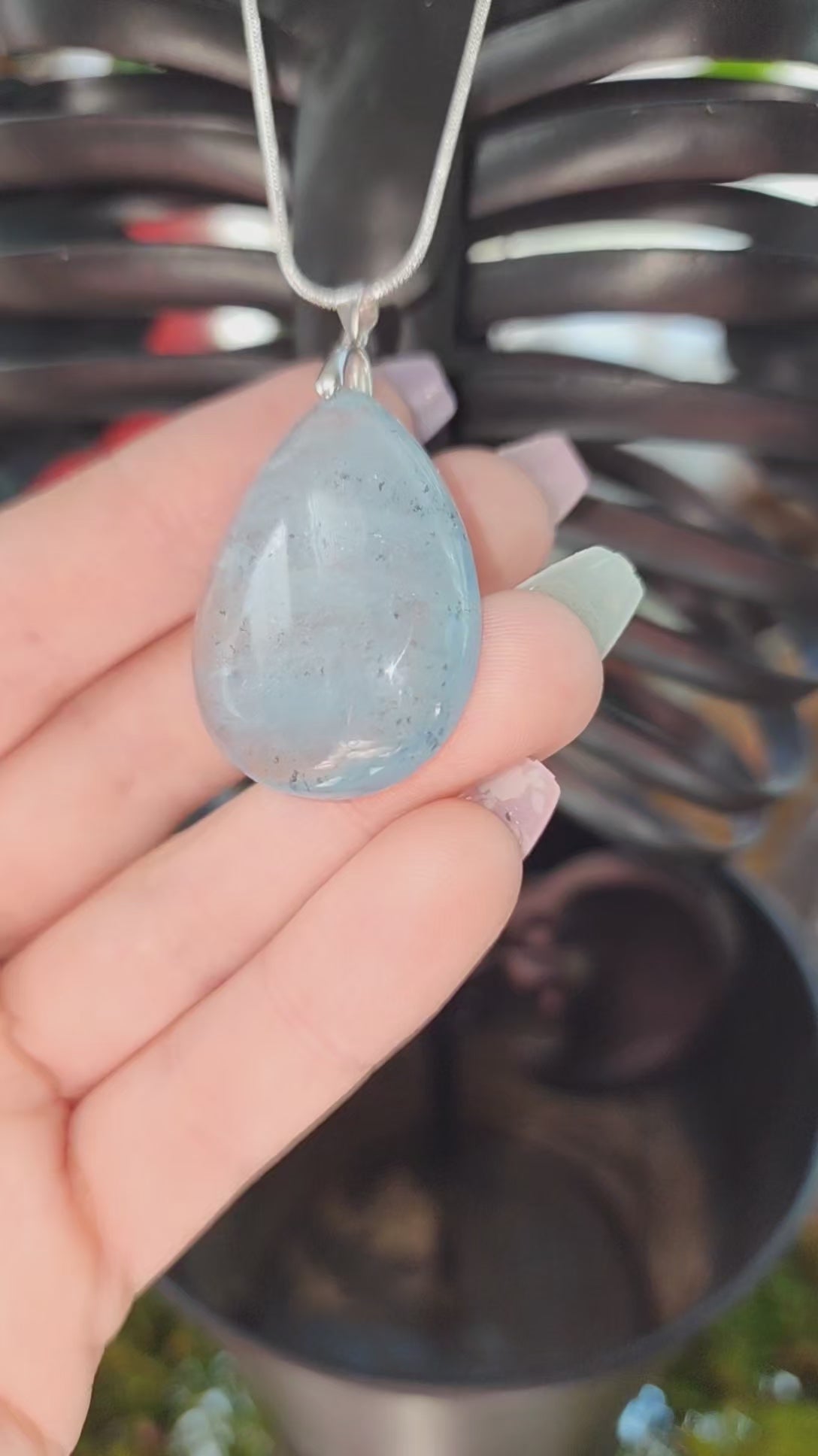 1.25 inches aquamarine teardrop pendant with dendritic and mica inclusions