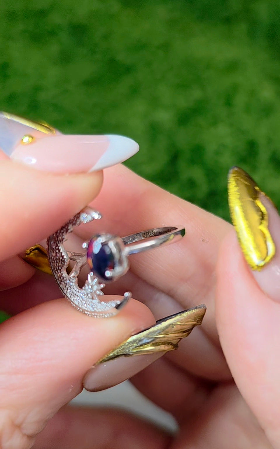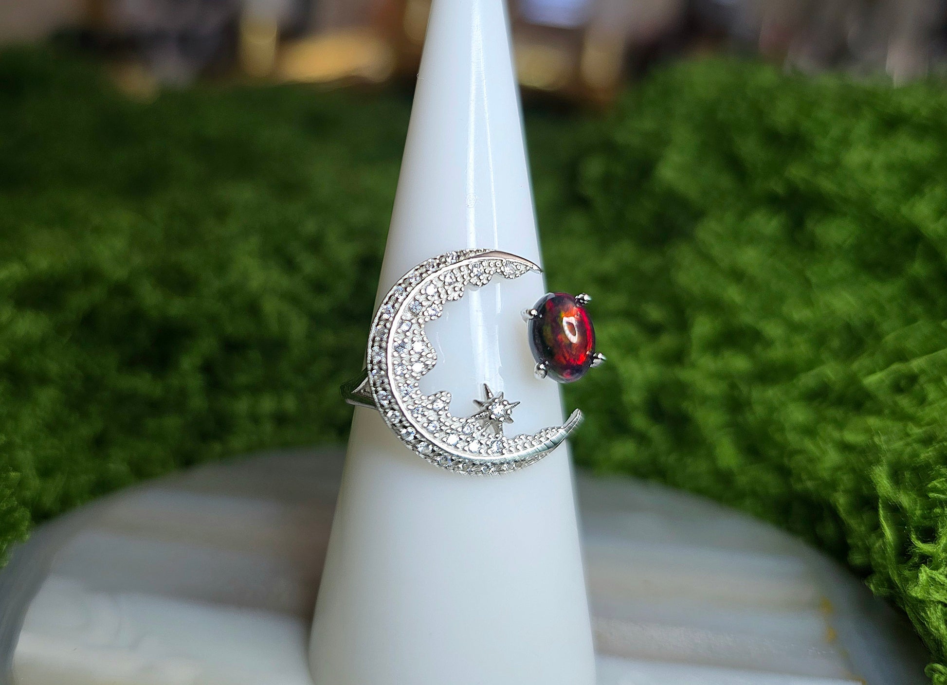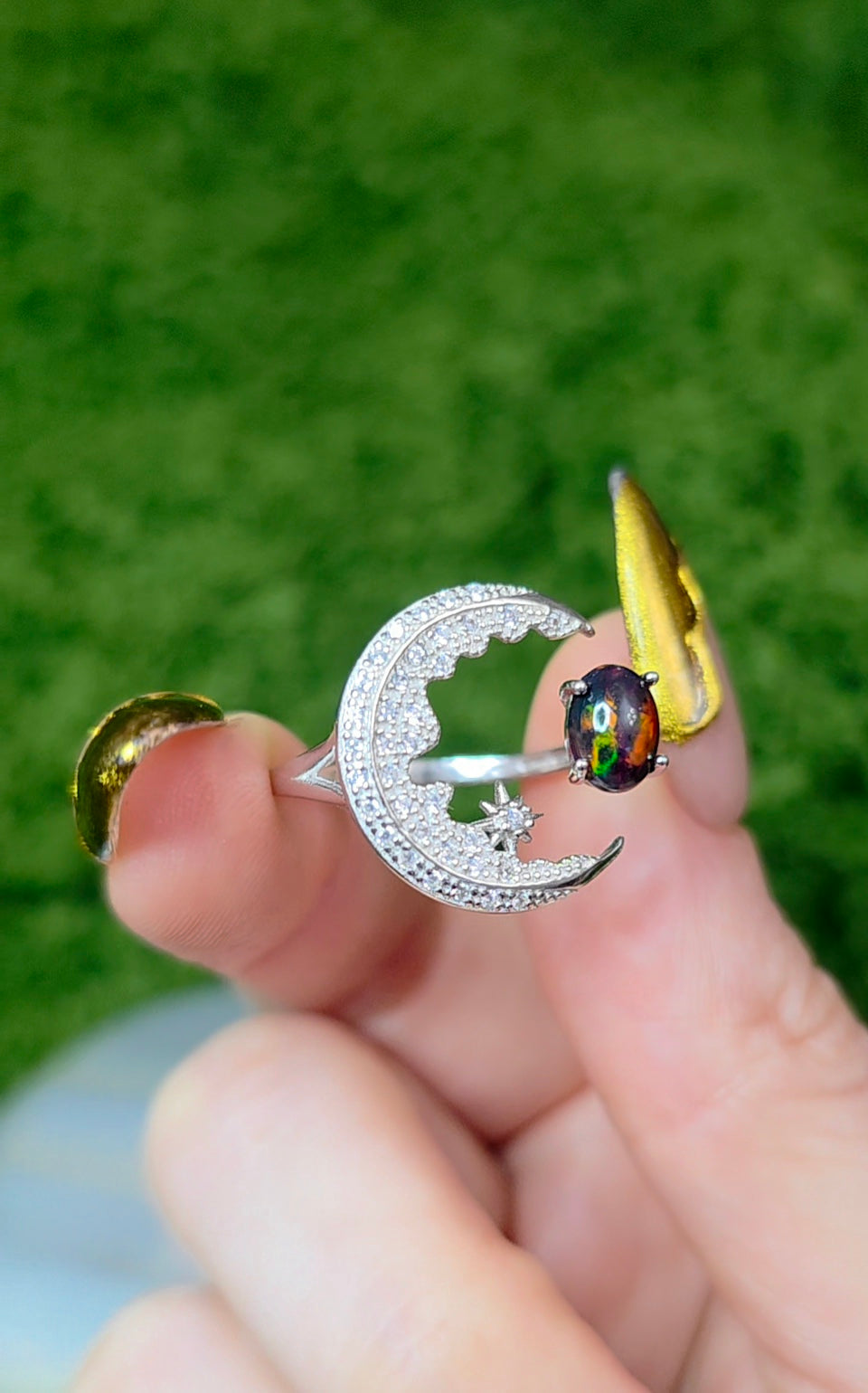 Black Opal Crescent Moon Ring A