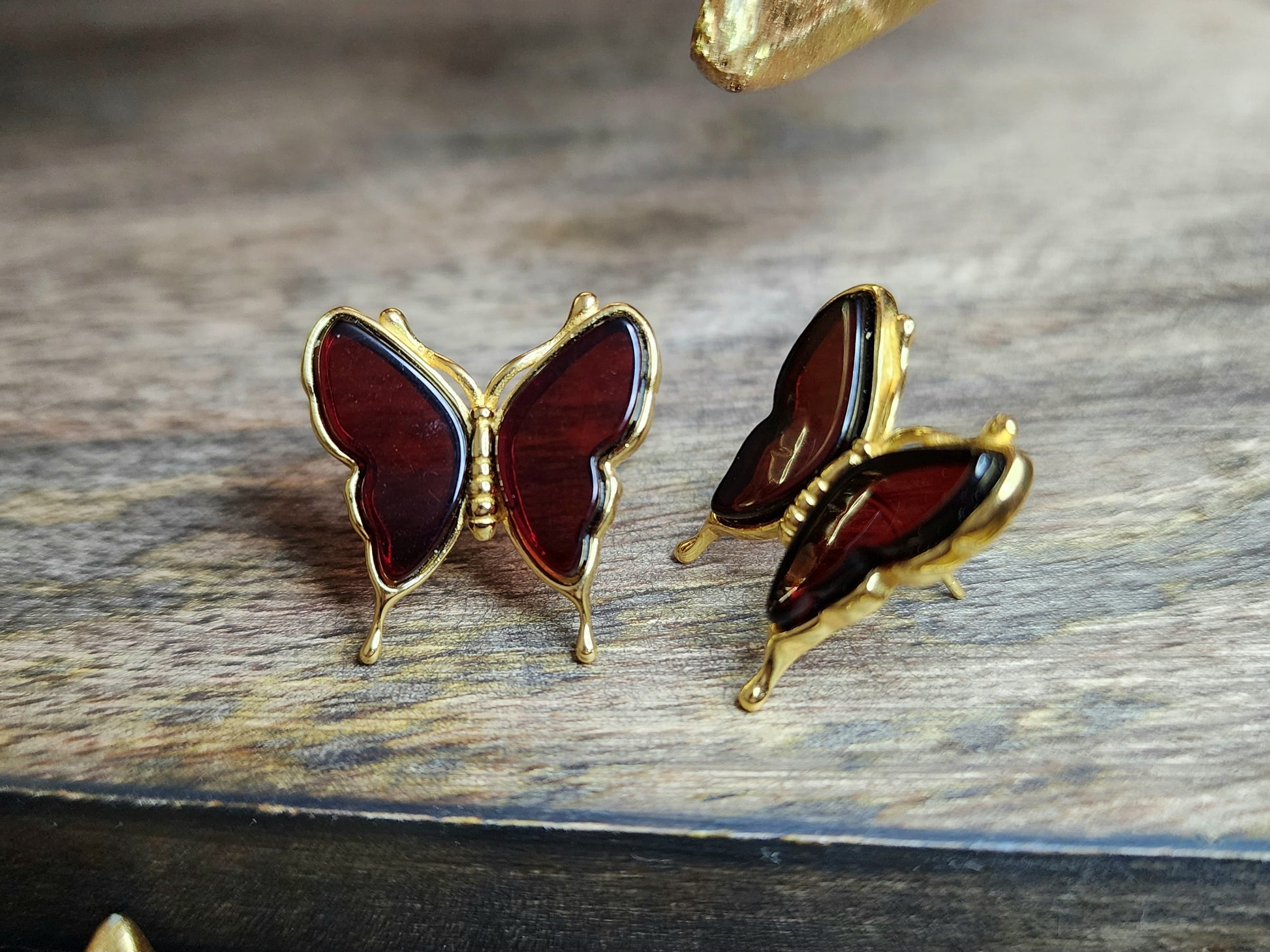 Blood Amber Butterfly Earrings