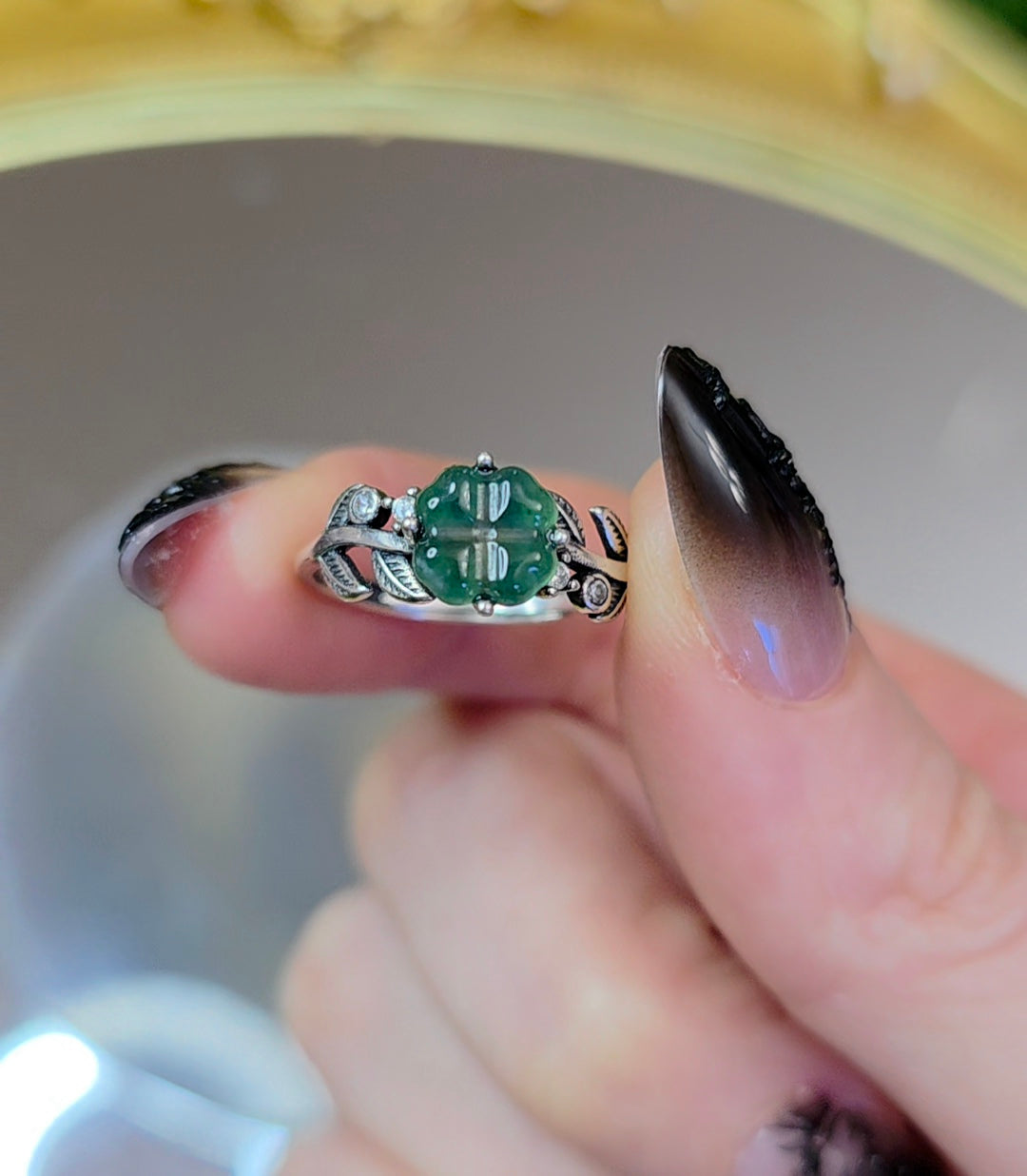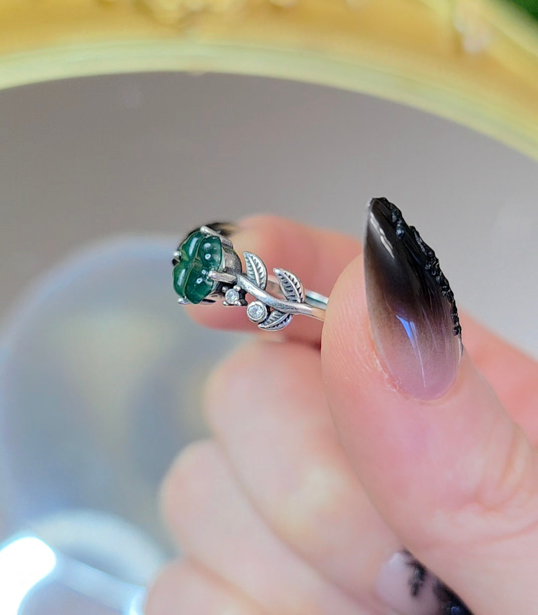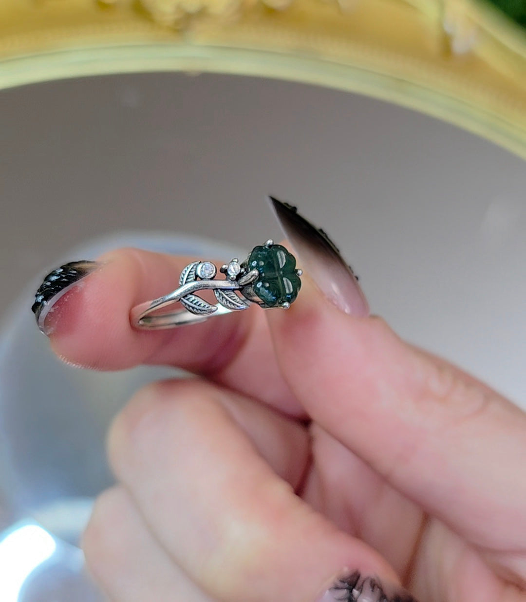 Blue Water Jadeite Clover Ring B