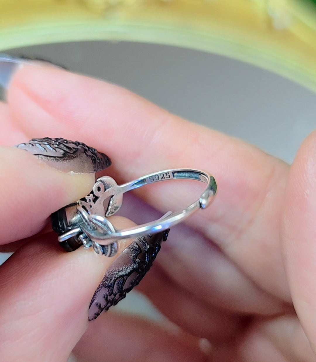 This 8mm stone is set into an adjustable sterling silver ring with leaf details. It will best fit sizes 6 - 8
