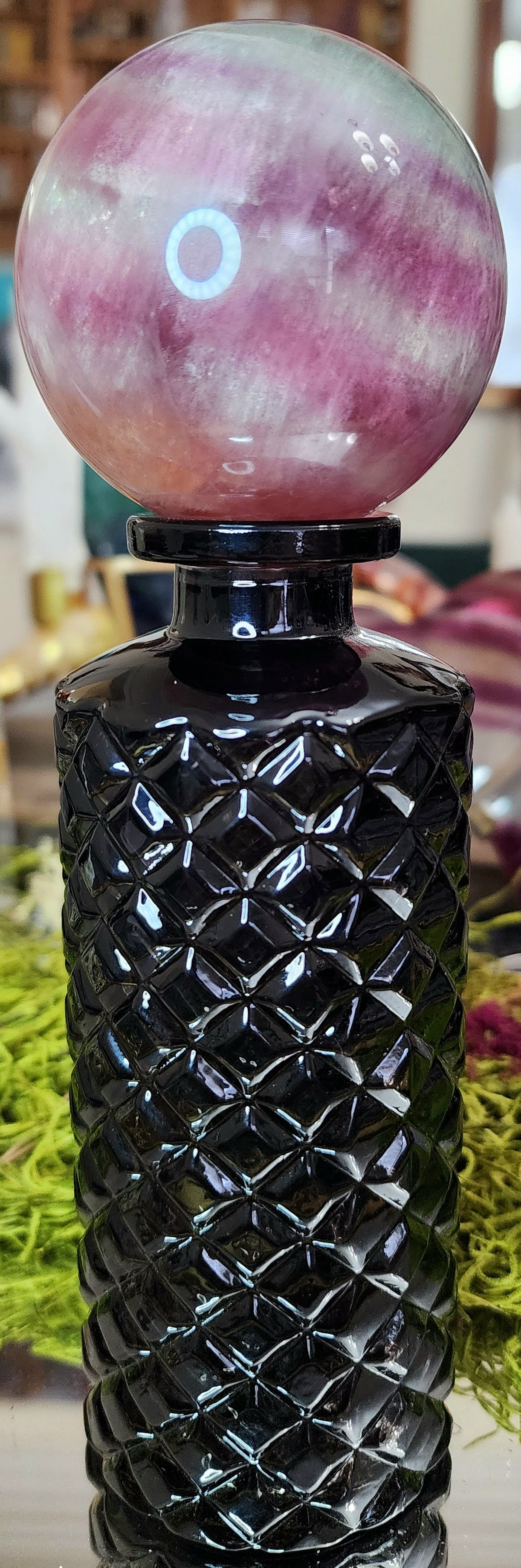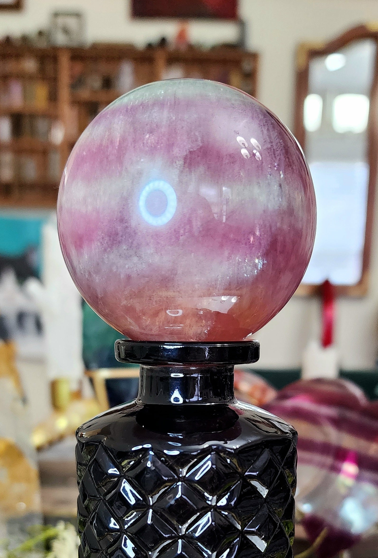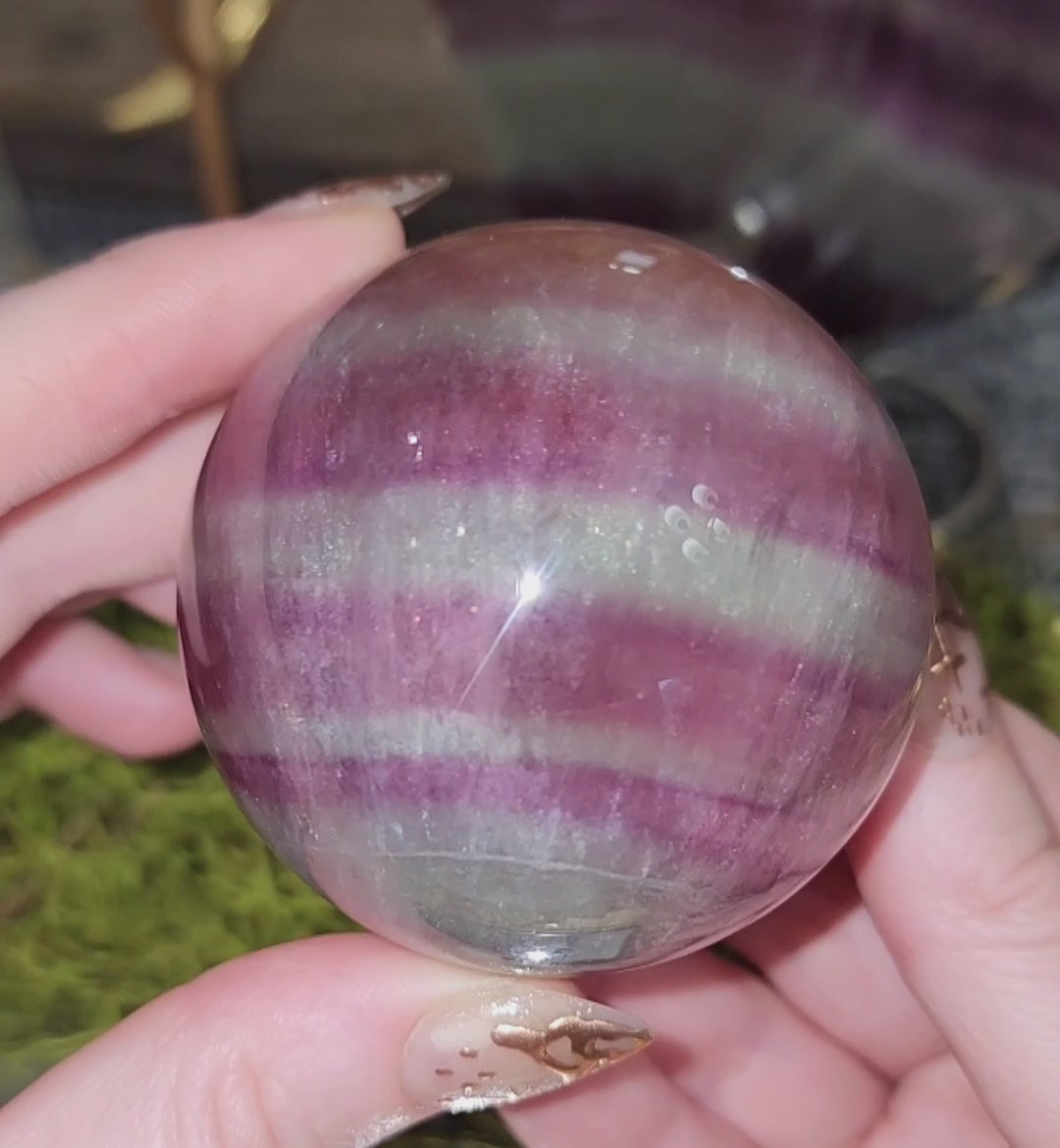 Juicy purple, blue, and yellow blanded fluorite sphere