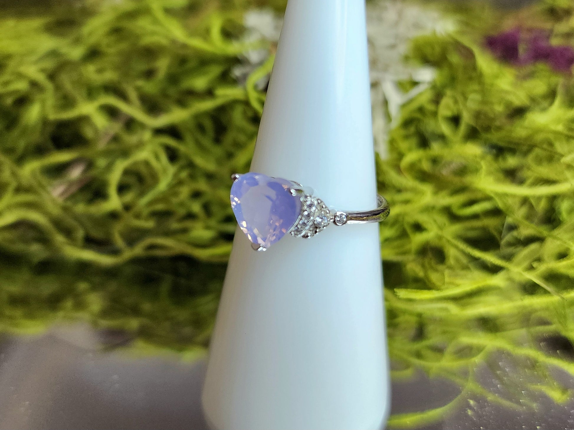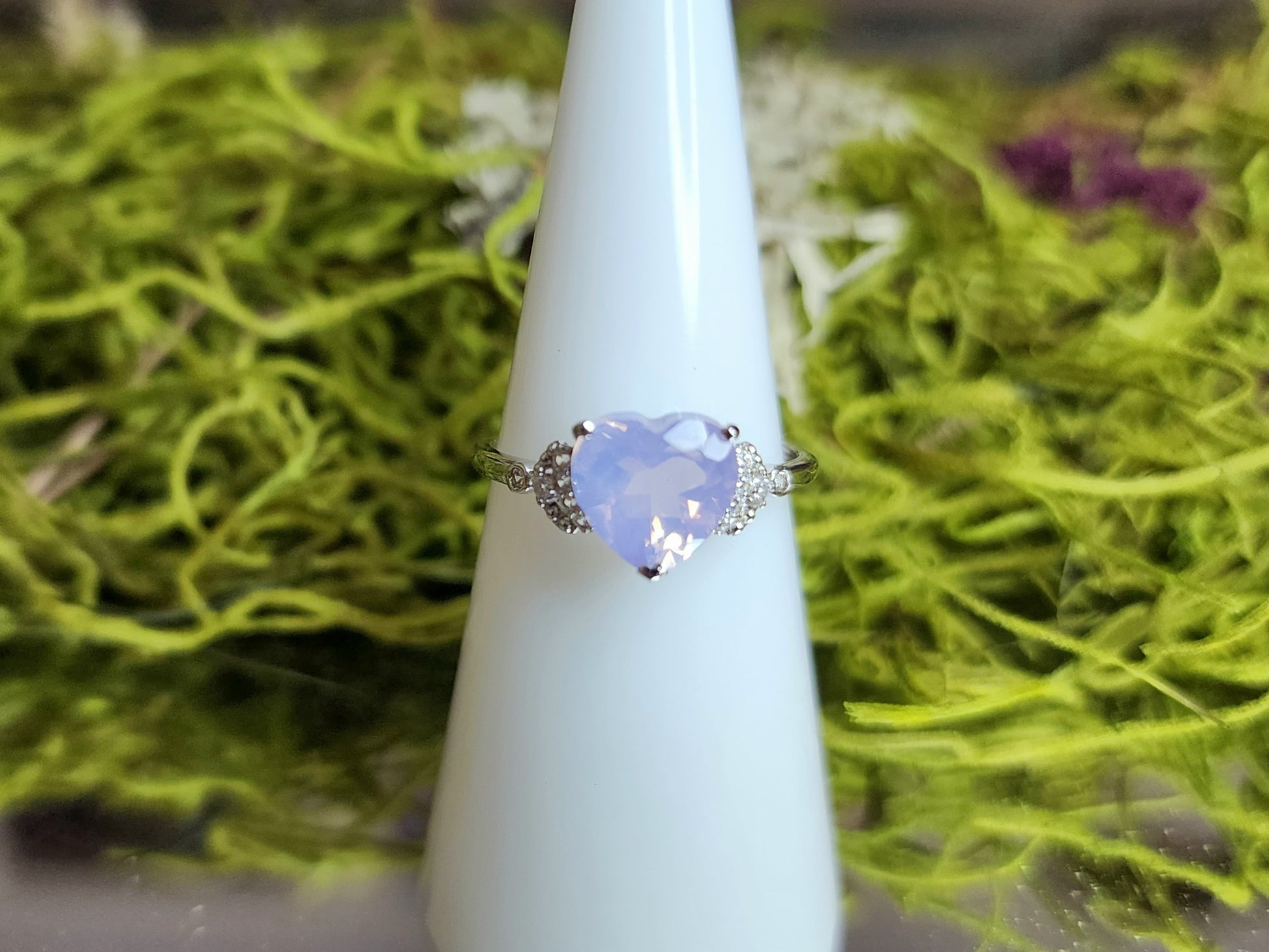 Dainty Faceted Lavender Moon Quartz Heart Ring A