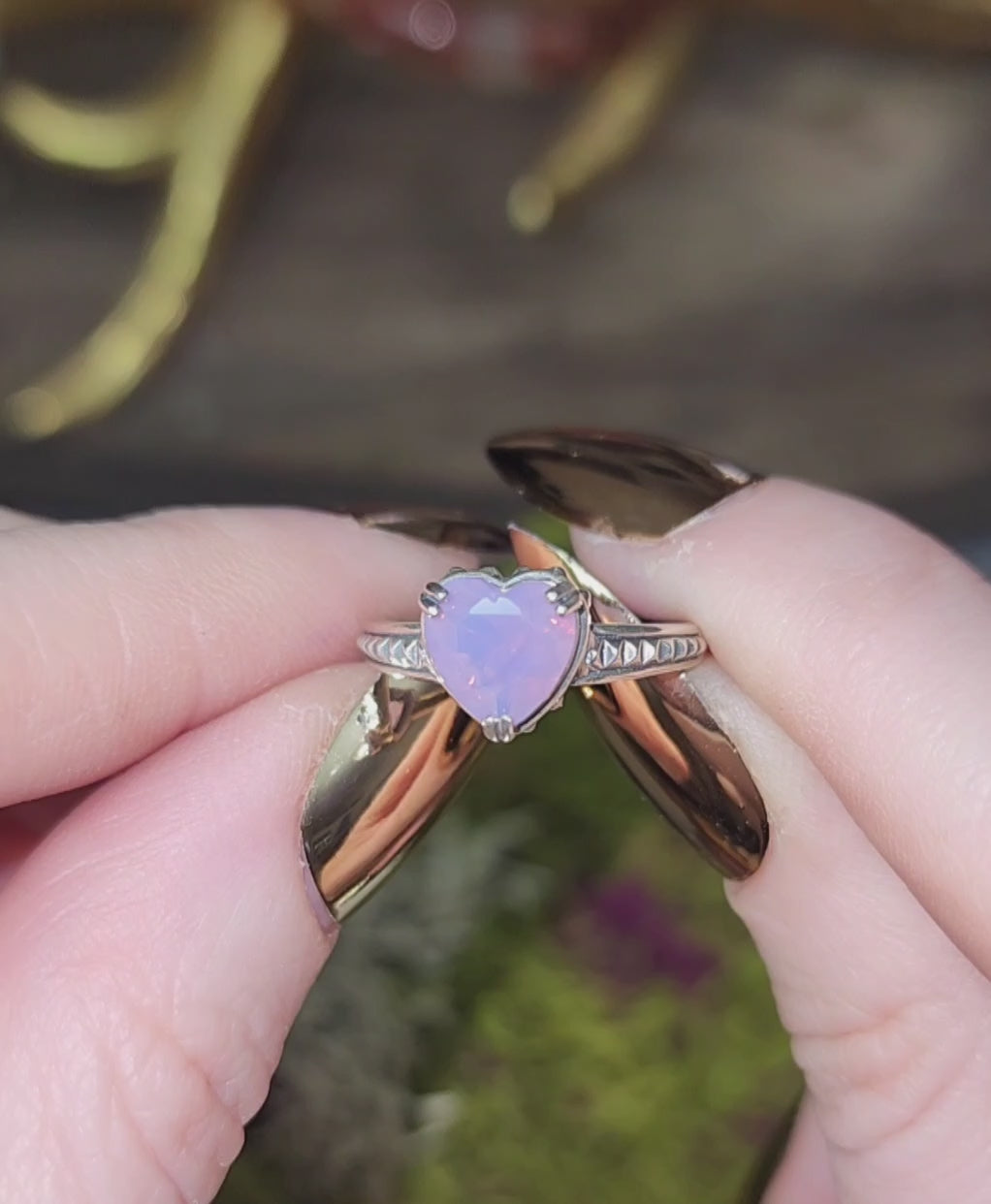 Dainty Faceted Lavender Moon Quartz Heart Ring B