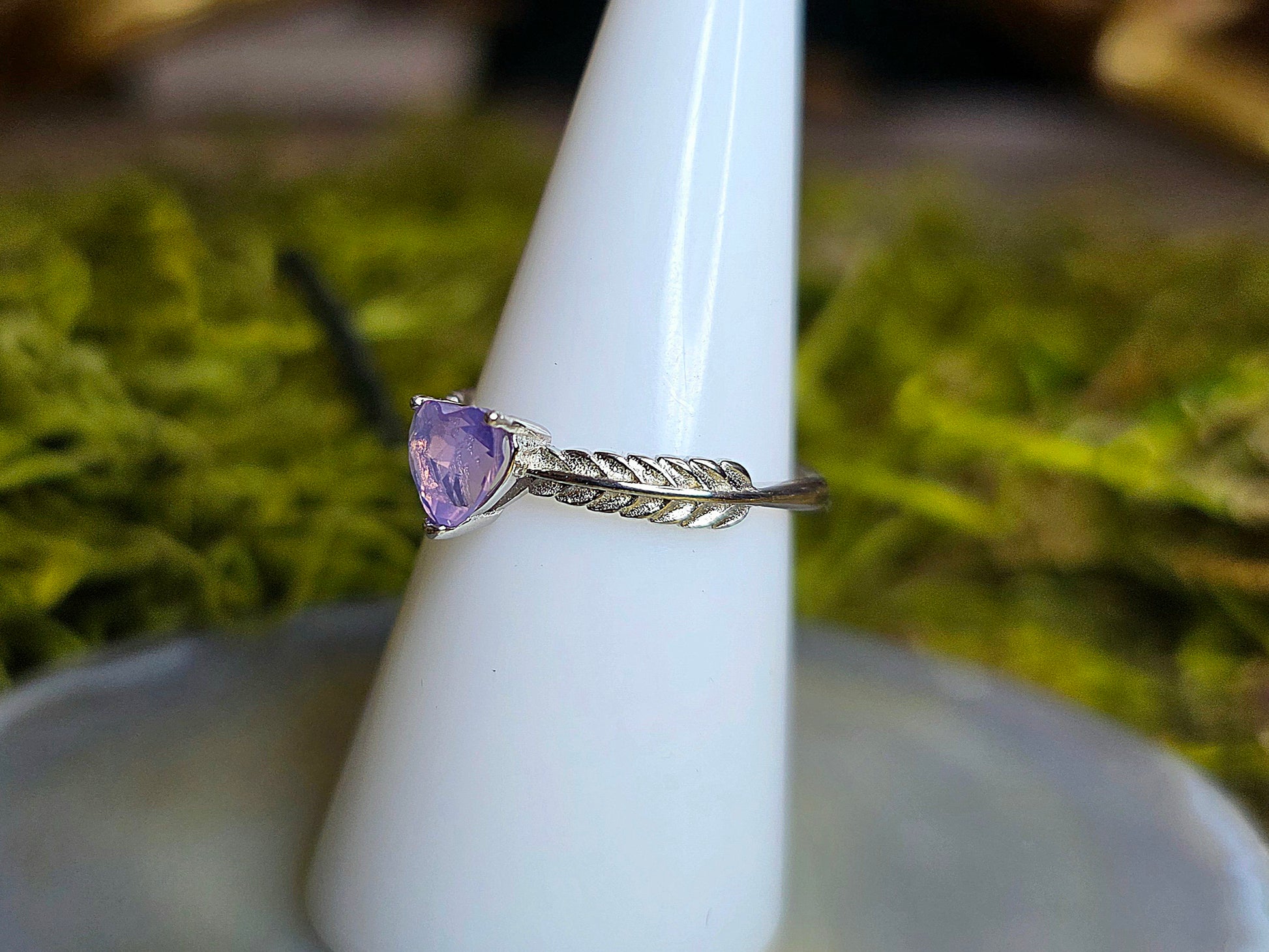 Dainty Faceted Lavender Moon Quartz Heart Ring C