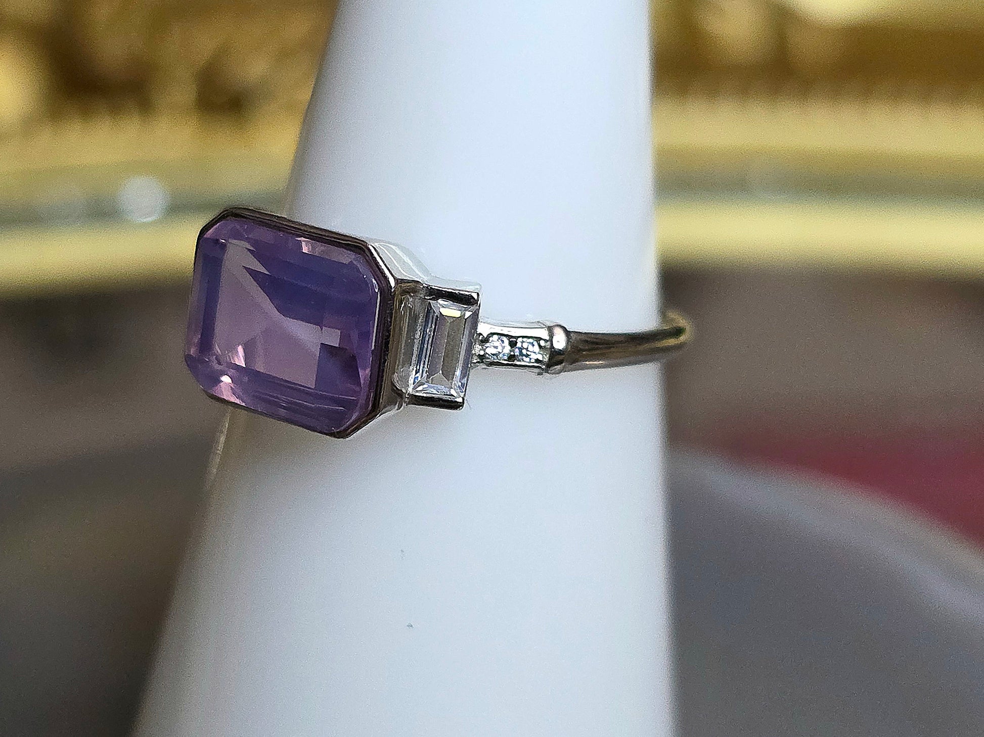 Emerald Cut Lavender Moon Quartz Ring