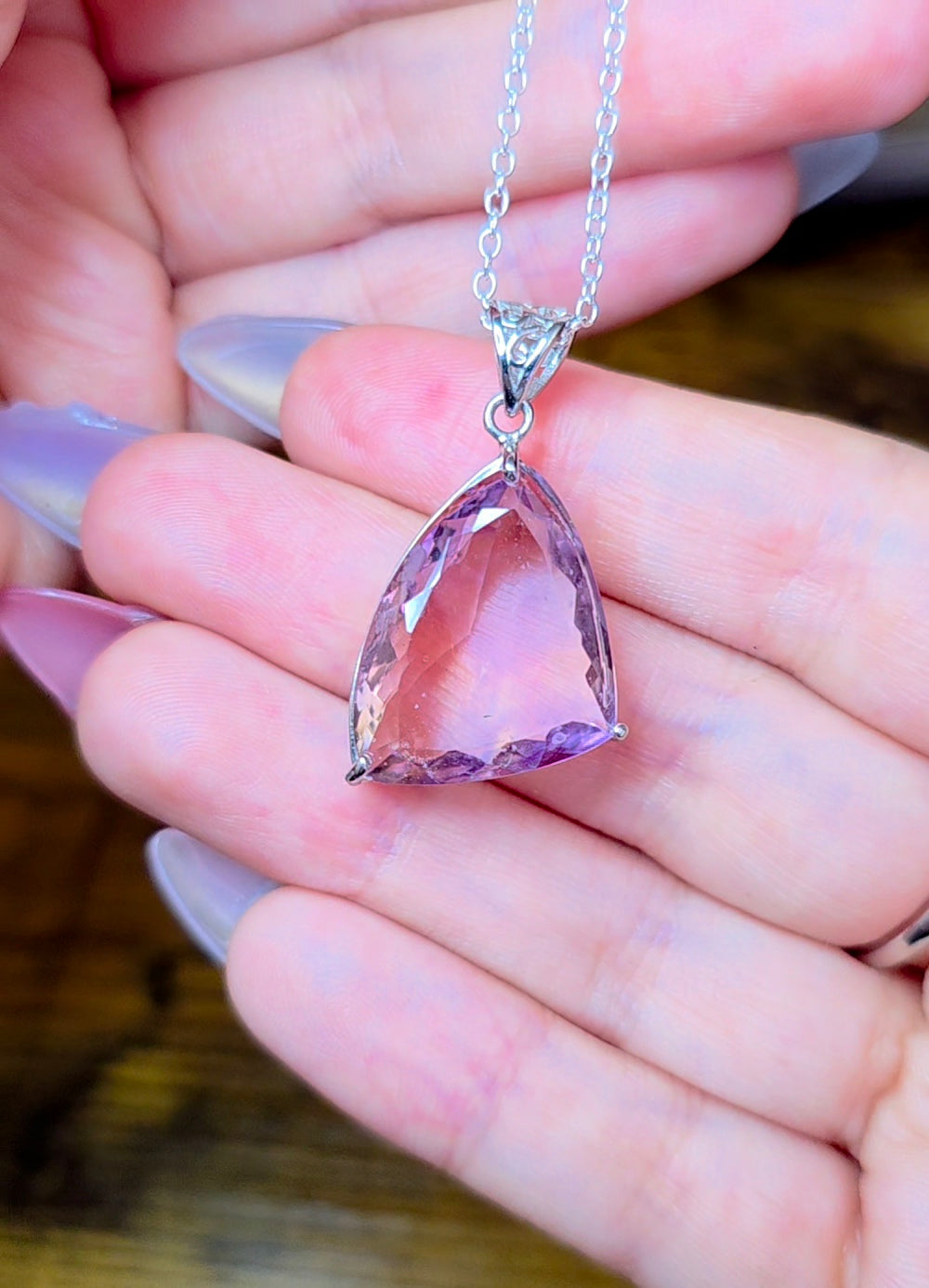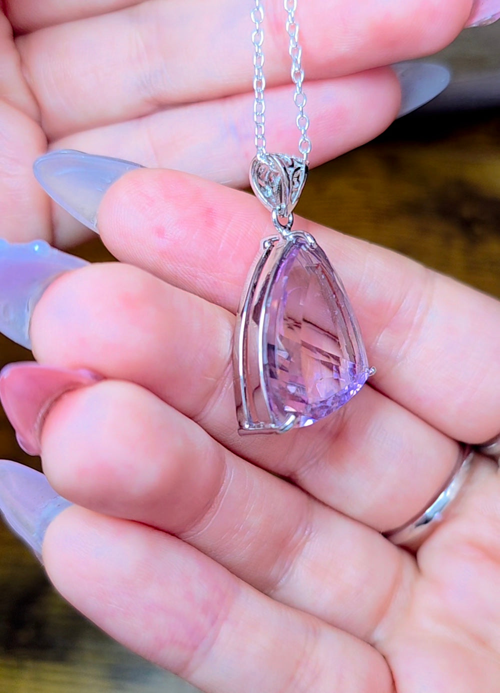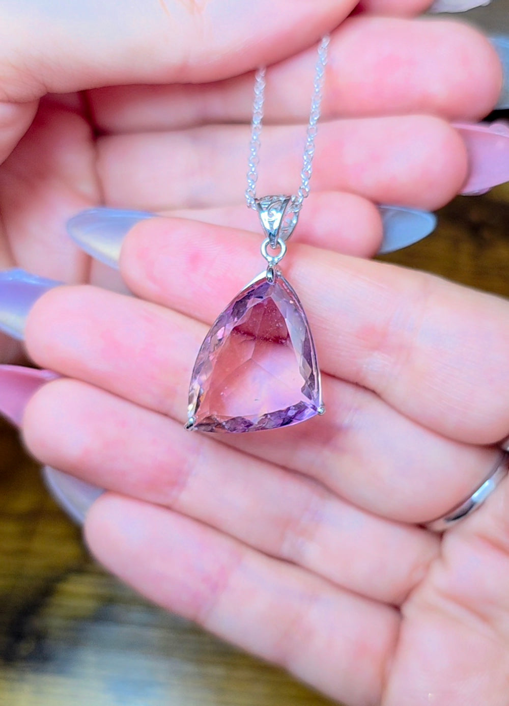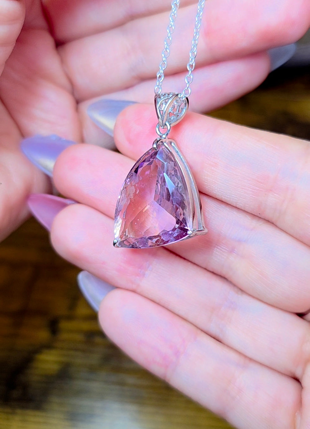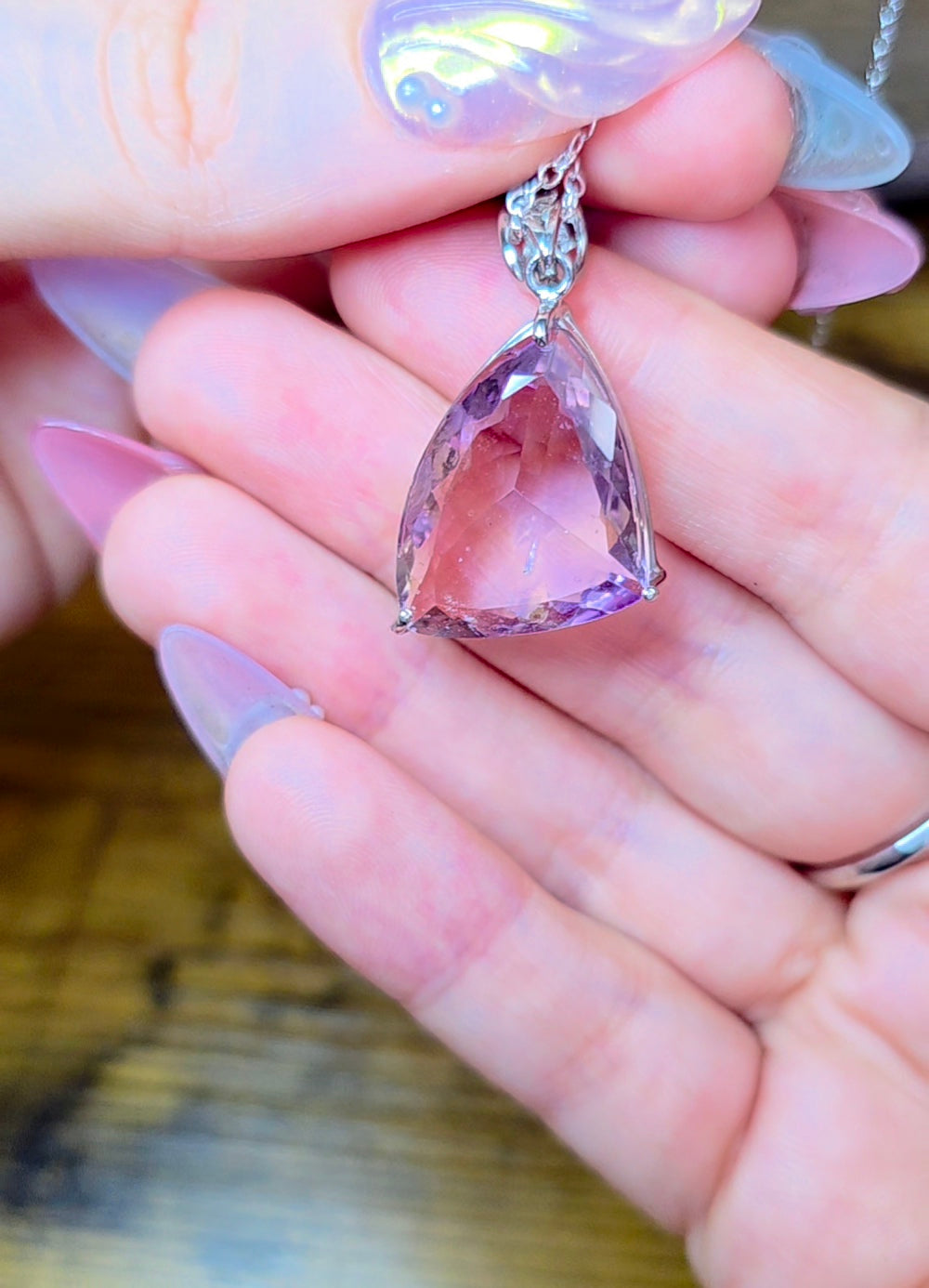 21x16mm faceted ametrine crystal set into a sterling silver pendant bail.