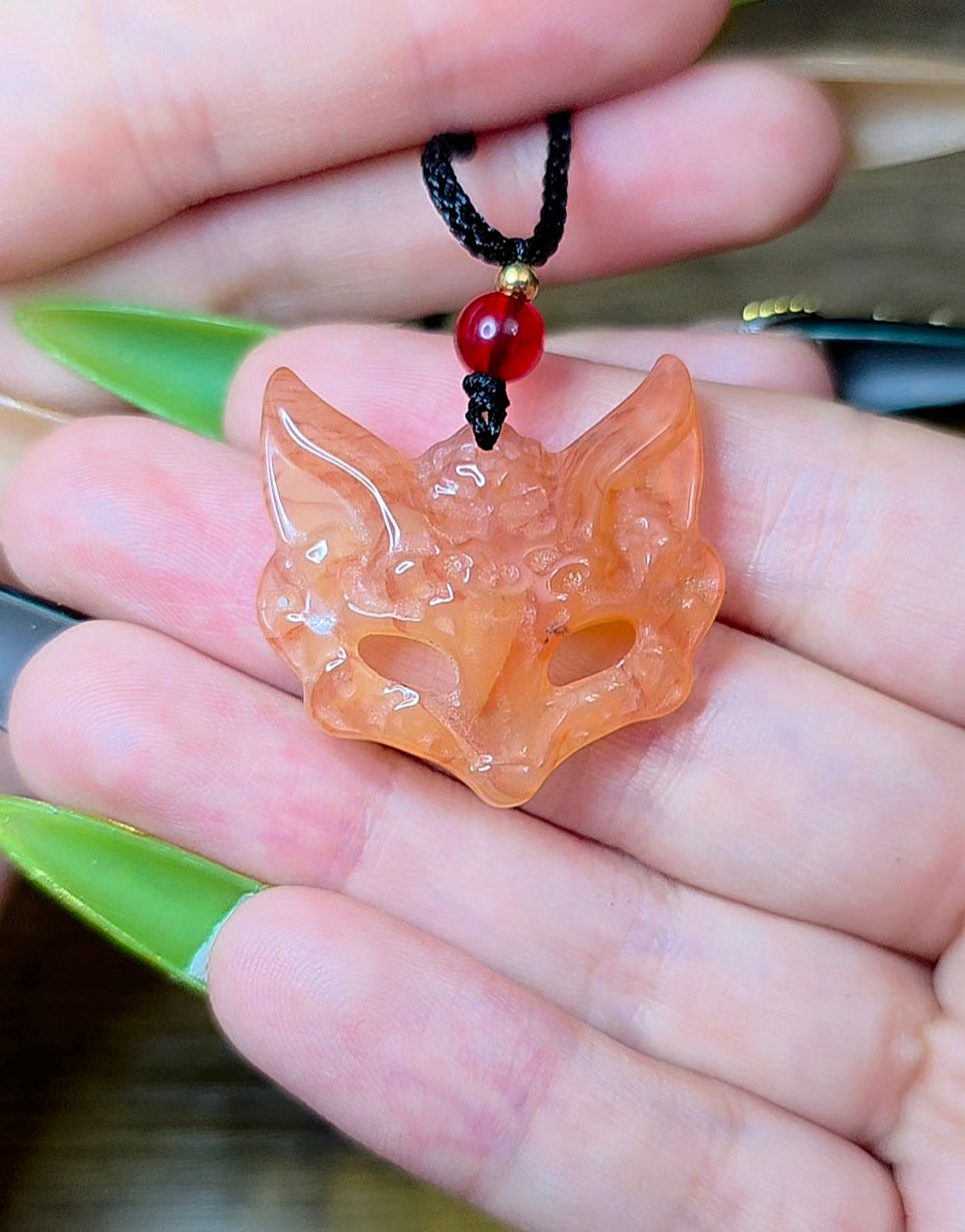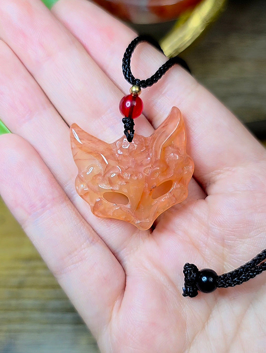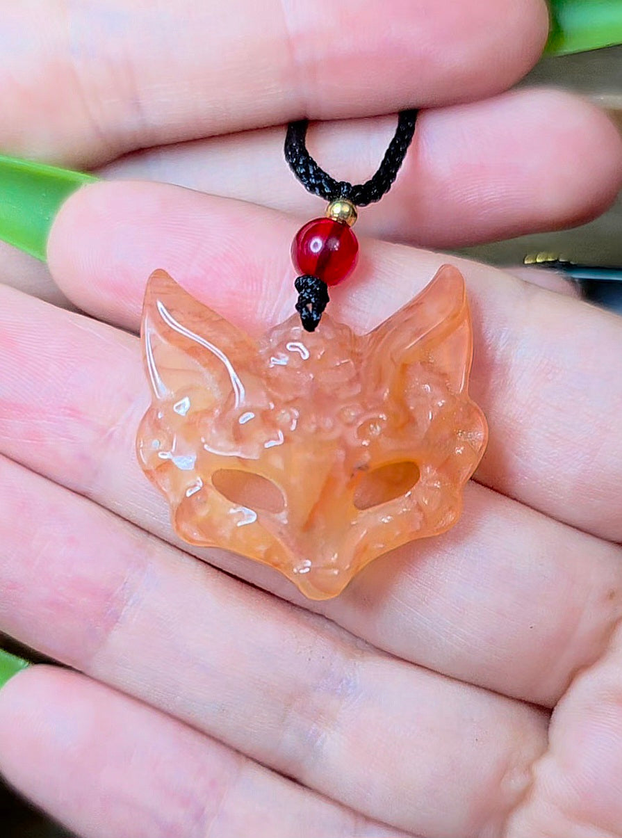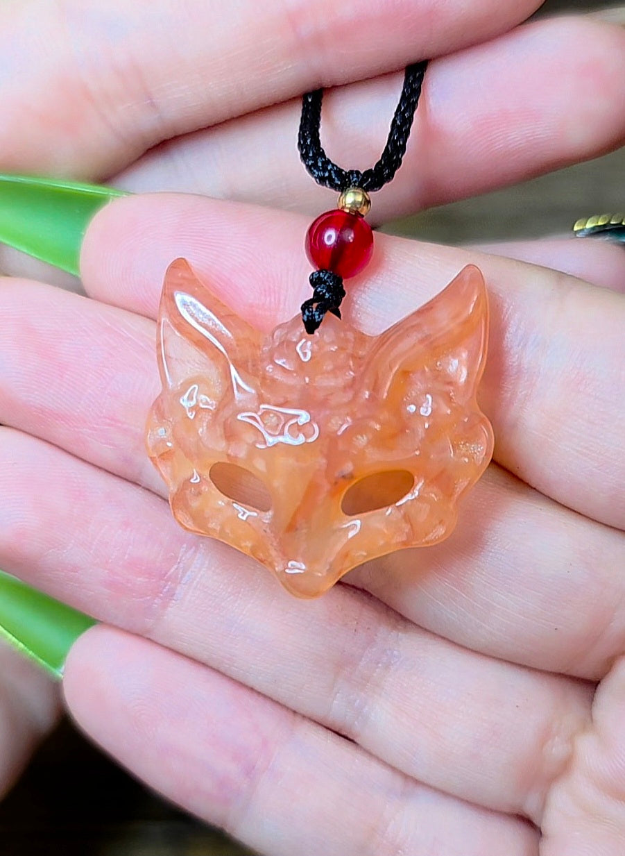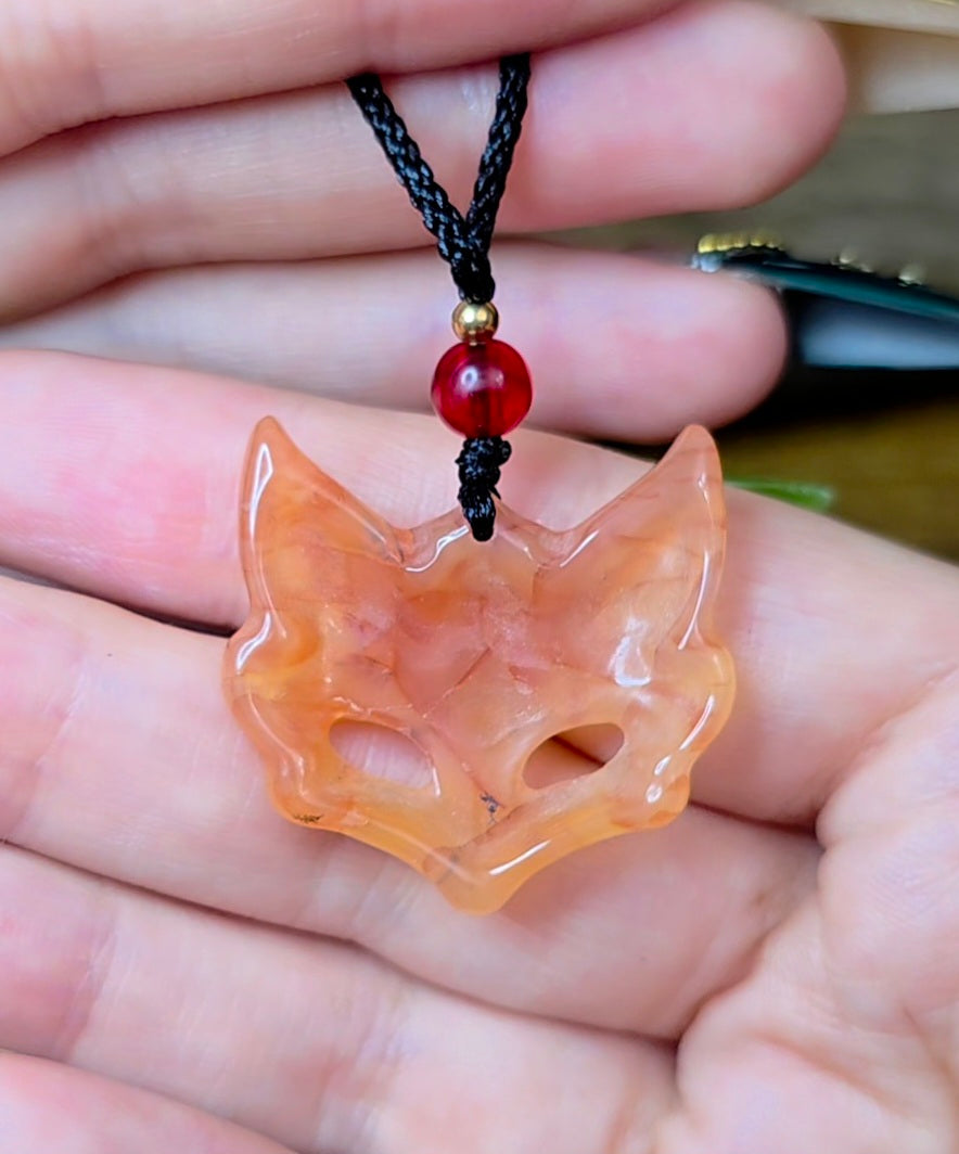 This 27mm stone has been carved into the shape of a fox mask and has been set onto a 26 inch adjustable nylon cord.