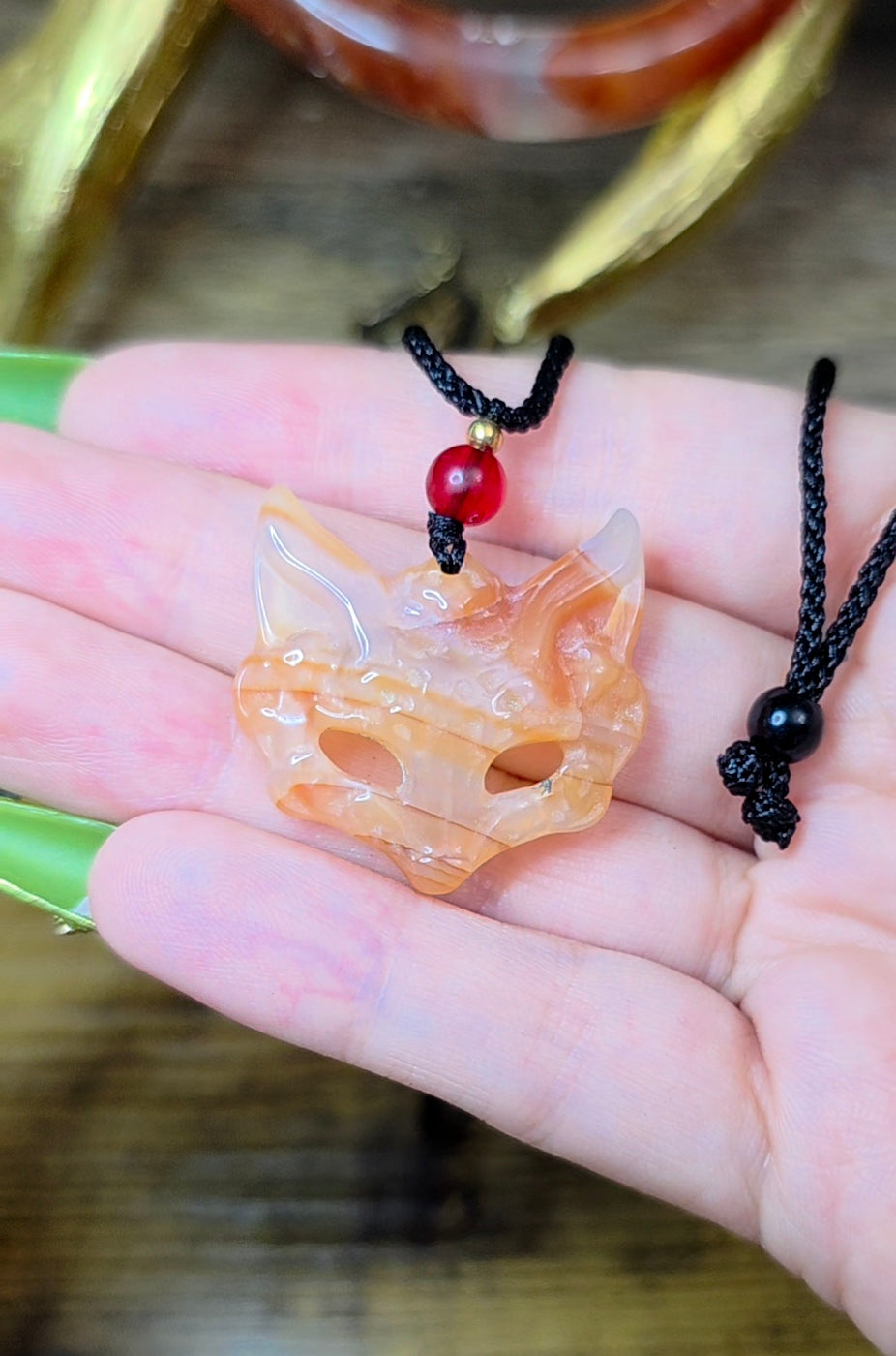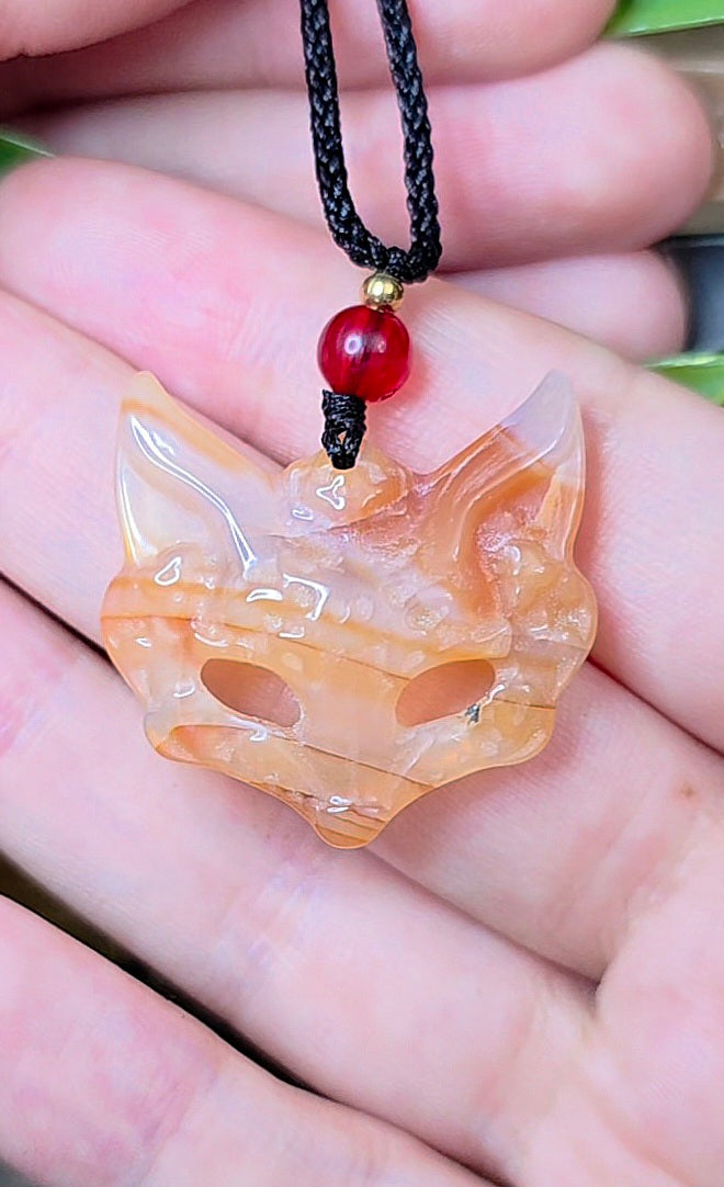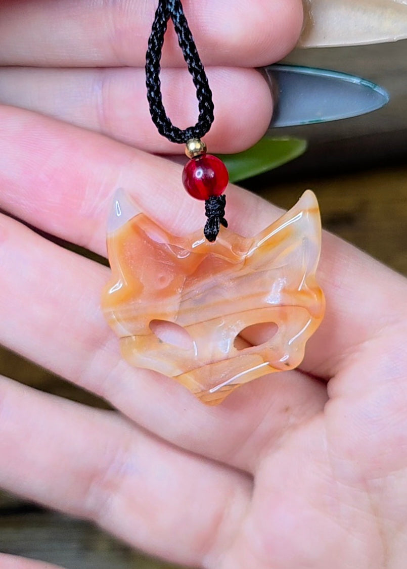 This 27mm stone has been carved into the shape of a fox mask and has been set onto a 26 inch adjustable nylon cord.