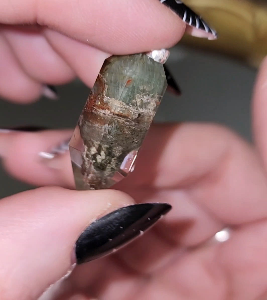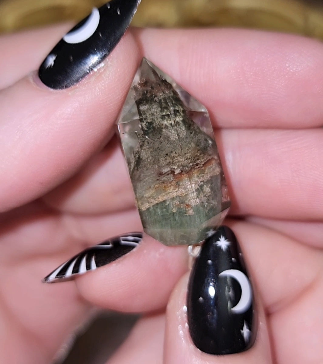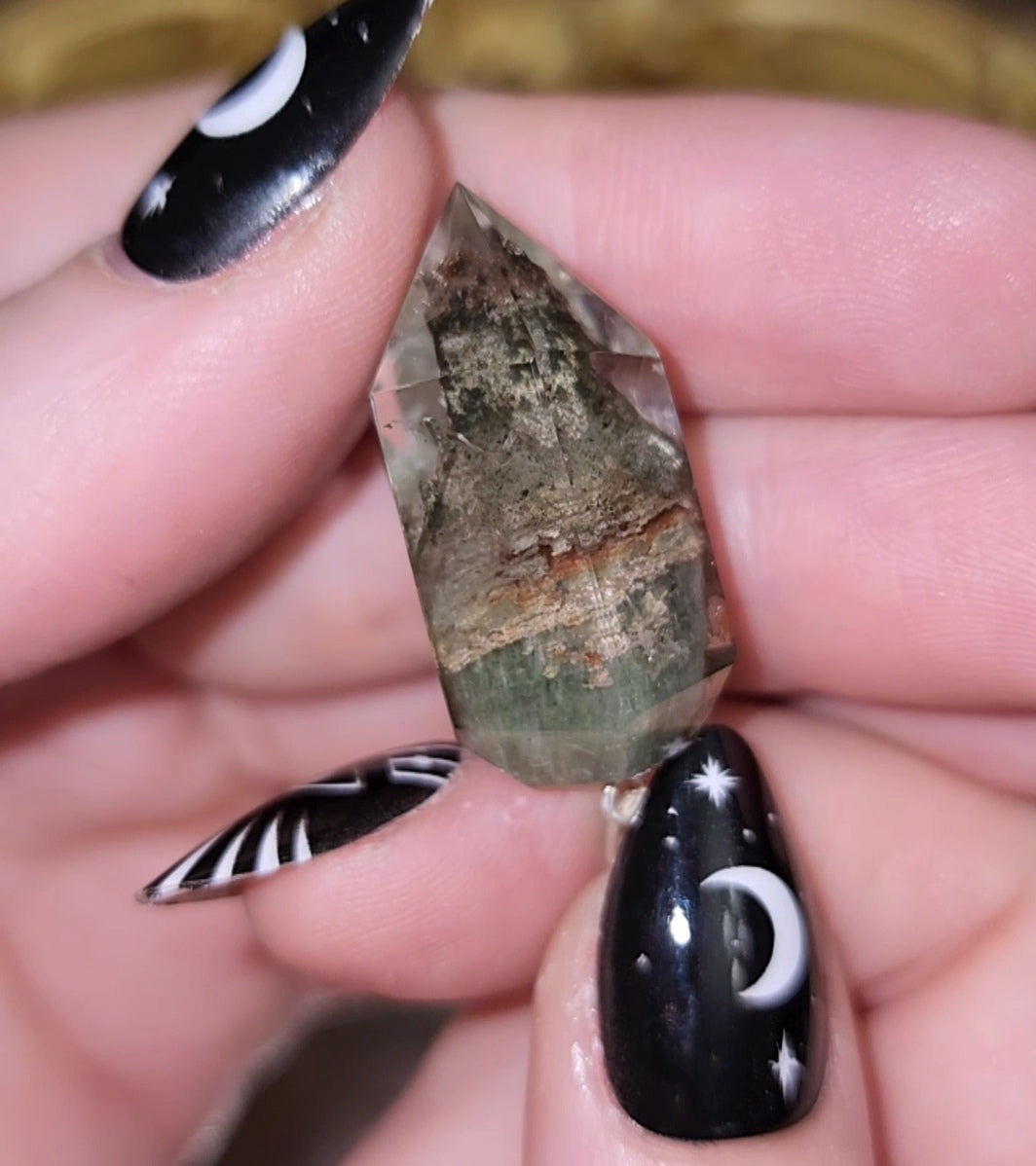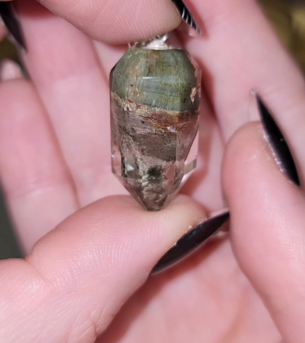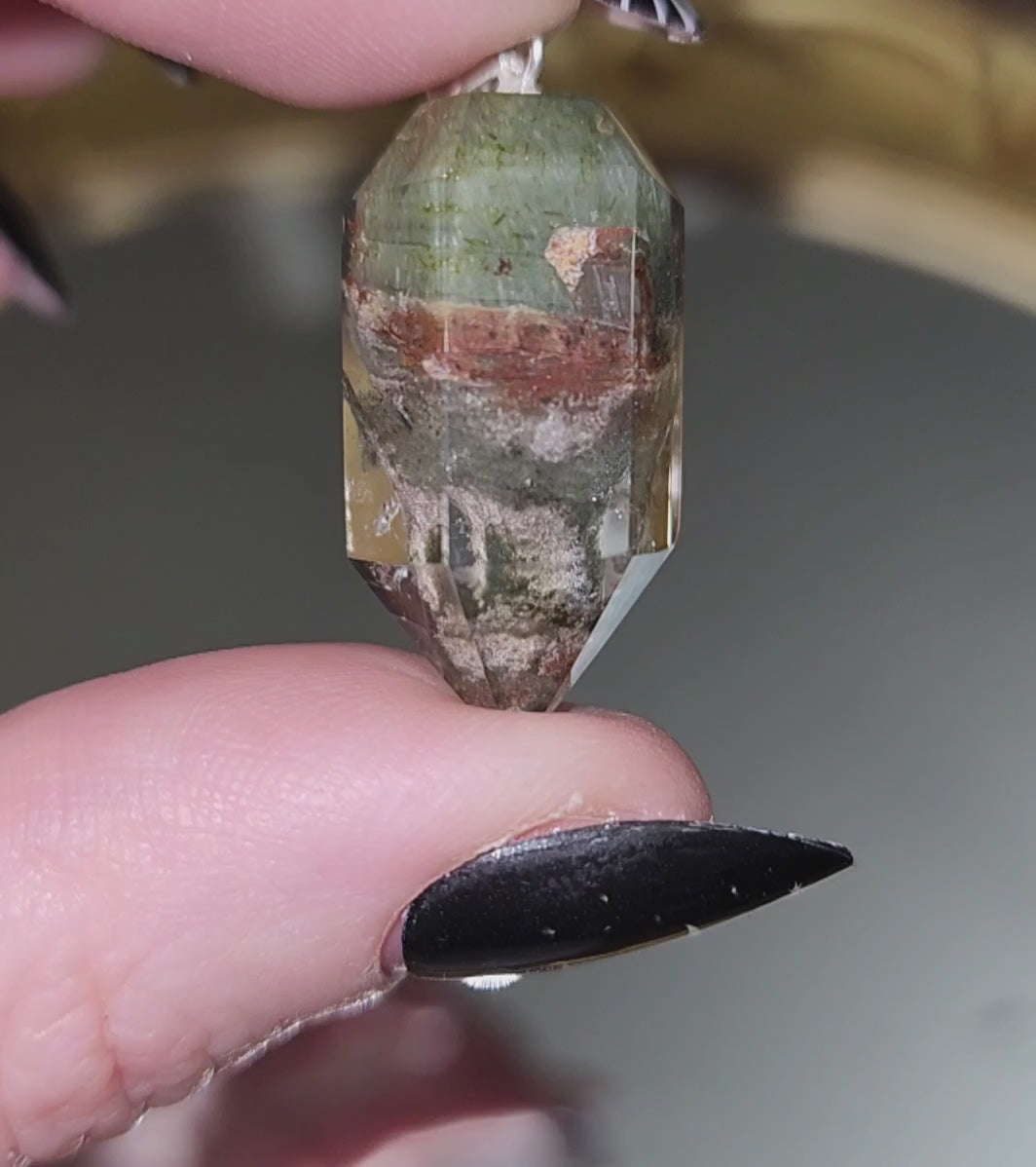 Very clear and expertly cut garden quartz (lodalite) freeform that has been set with a sterling silver pendant bail.