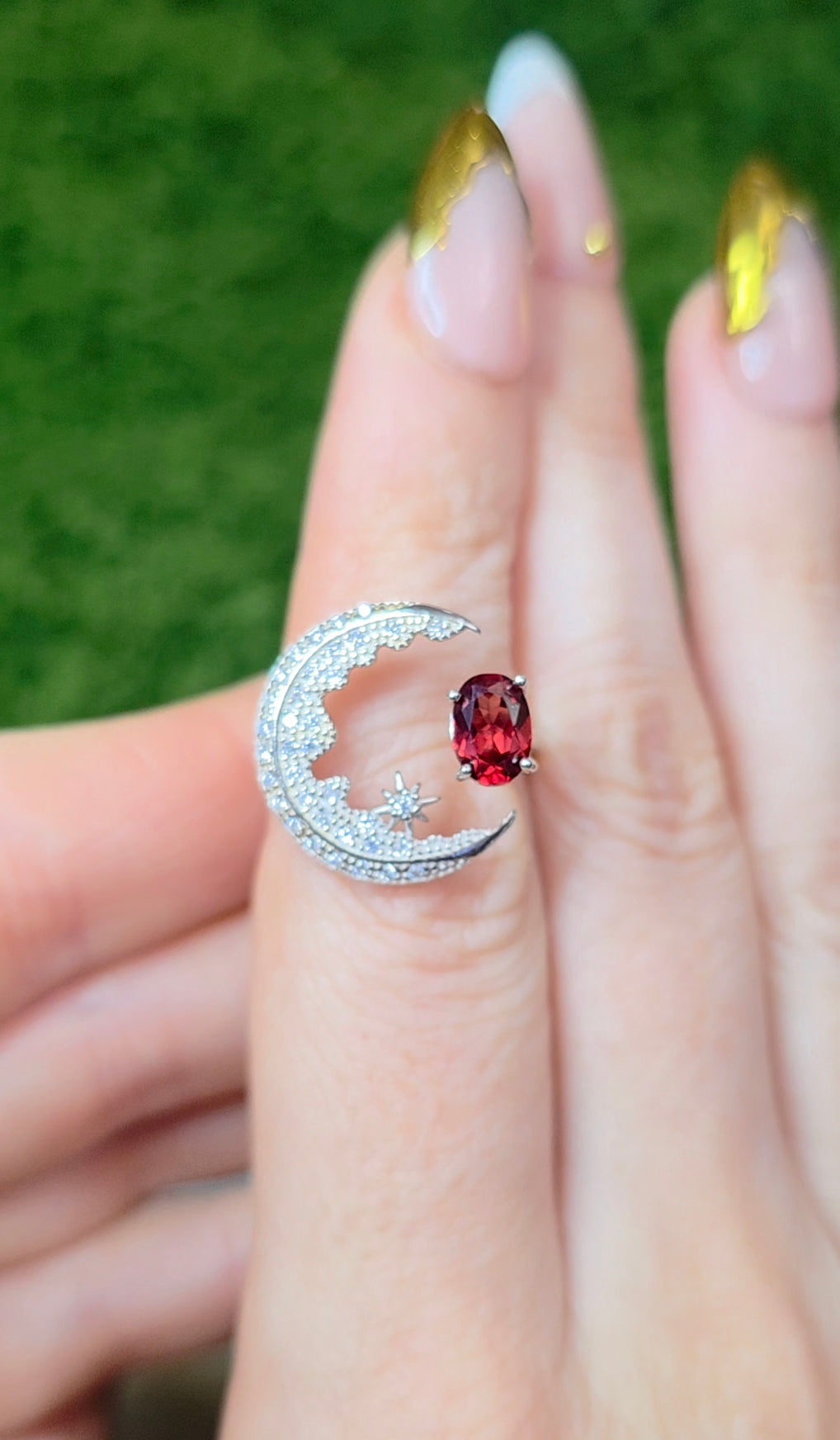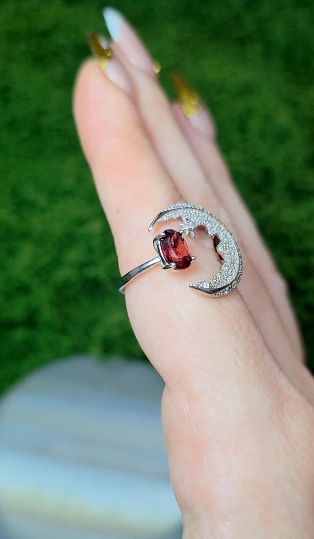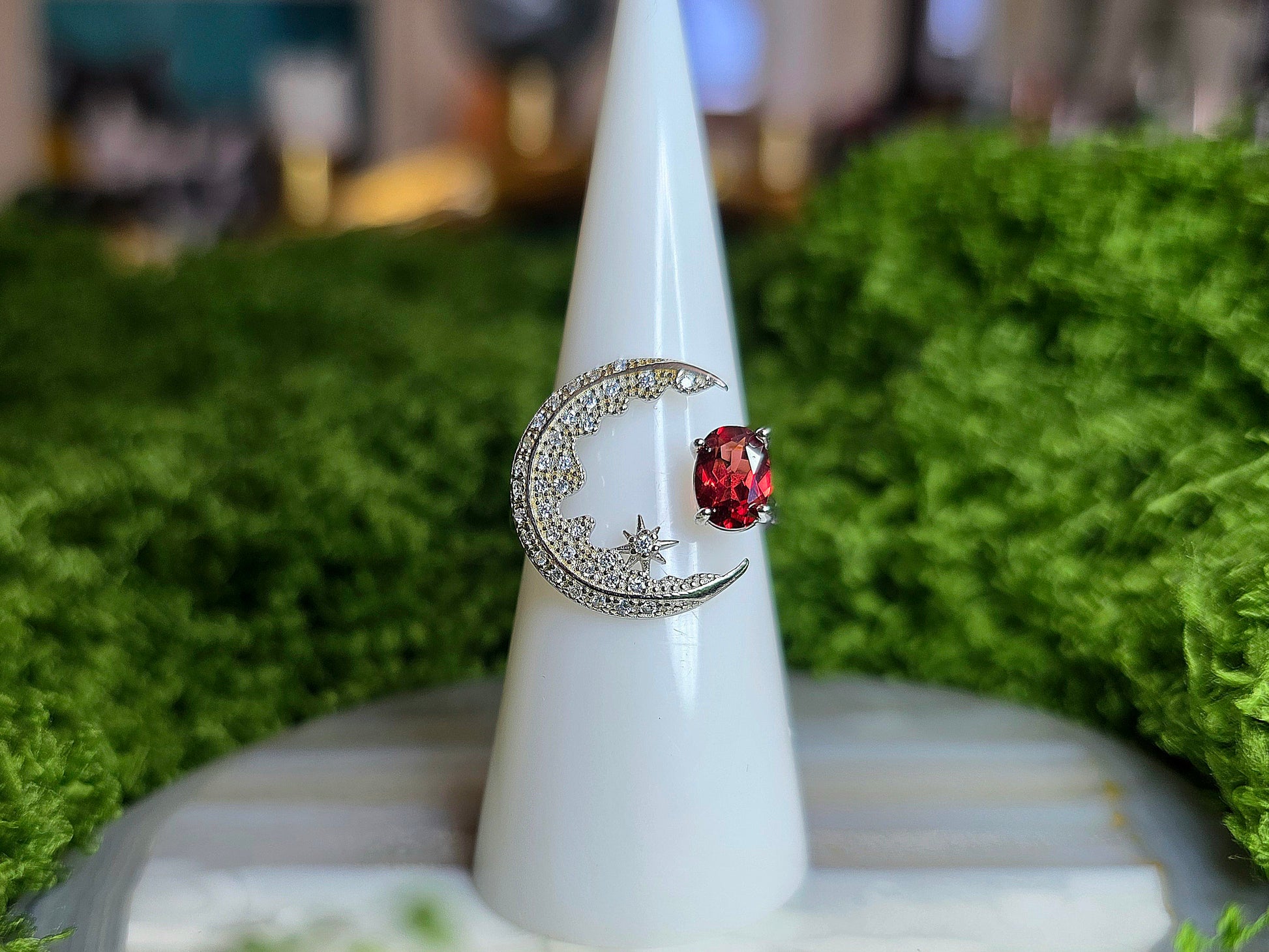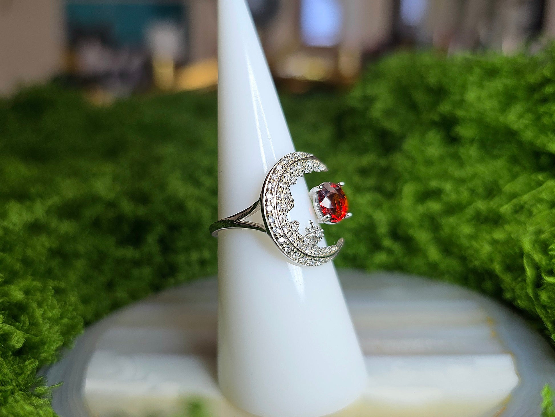 Garnet Crescent Moon Ring